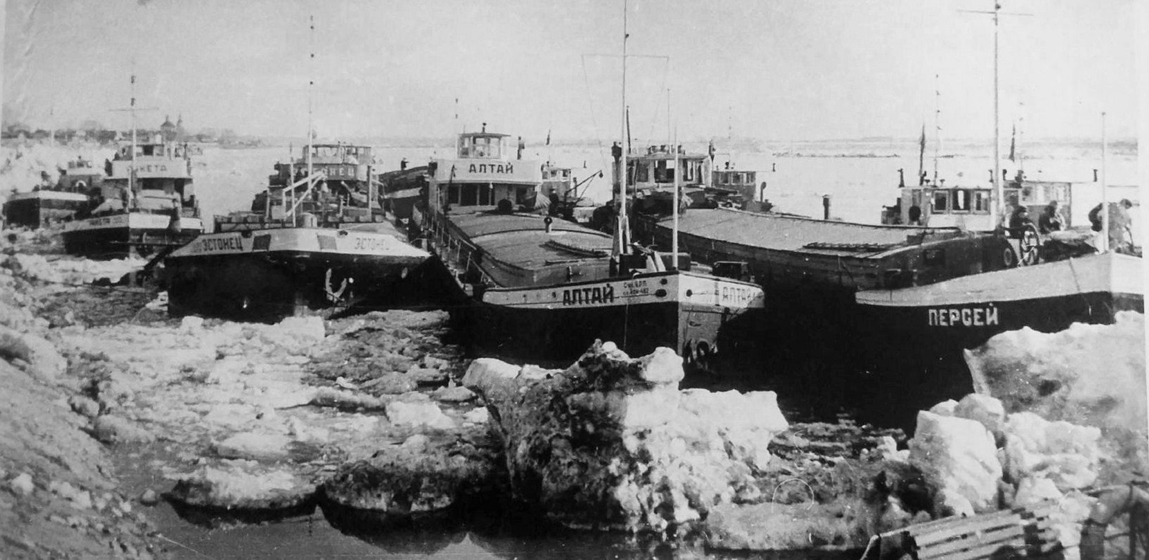 Ich sende ein Foto dieses Schiffes unter dem Namen Altai (Алтай- das Schiff in der Mitte des Fotos).