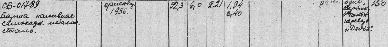 Guten Abend, Helmut! Informationen zum Bauort finden sich in den Unterlagen nicht. Es liegt ein Reisepass für das Schiff Altai vor. Ich hänge es an die Nachricht an. Das Foto ist sehr unscharf. Man sieht aber, dass es sich um ein Frachtschiff handelt. 1936 ist möglicherweise das Datum der Motorisierung des Lastkahns. Die Russen glaubten oft, dass dies das Baujahr des Schiffes sei. Kurz gesagt, die Frage bleibt vorerst offen.