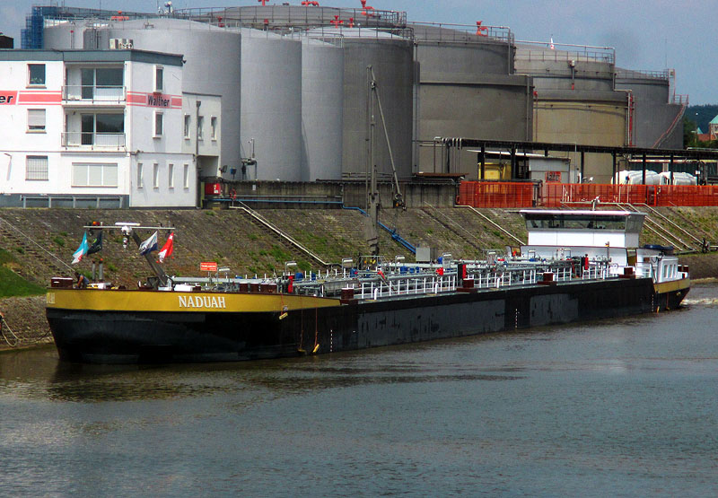 Der Tanker NADUAH heute talfahrend im Oberwasser-Kanal der Schleuse Bad Abbach.
