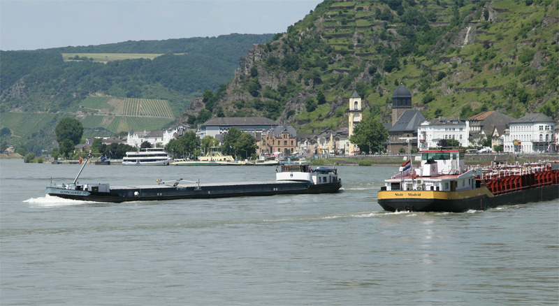 Eine Stunde später, um 13:29, begegnen sich GMS Sempachersee und TMS Stolt Madrid am Bankeck bei St. Goar: