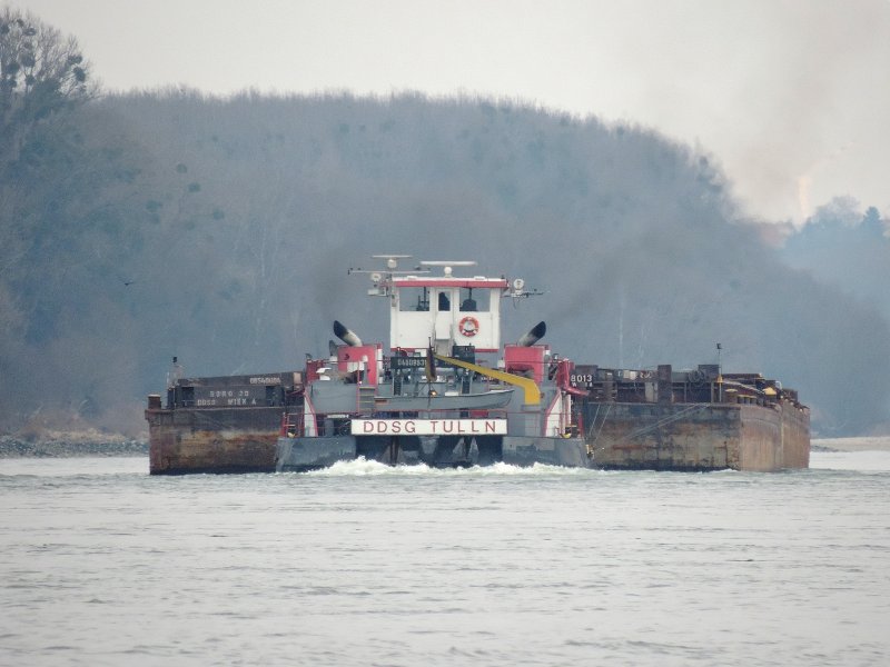 Sieht man nicht jeden Tag. SB "YBBS" mit 12 Bargen auf der Unteren Donau.