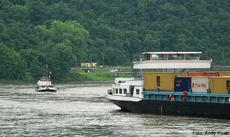 Das Bild wurde im Gebirge am Kammereck gemacht. Rhein-KM 553. Beide Schiffe waren auf Talfahrt.