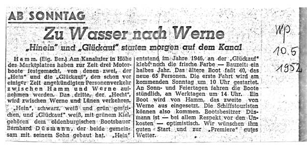 Die "Santa Monika`s hatten scheinbar als Fahrgastschiffe auf dem D-H-K- schon Vorläufer. In einem Zeitungsartikel in der Westfalenpost in Hamm erschien dieser Artikel: