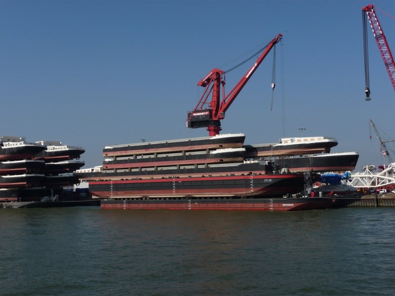 Im Archiv fand ich ein Foto eines Pontons, beladen mit 13 (!) Kaskos aus China. Dieses Bild wurde am 6. September 2009 in Rotterdam aufgenommen.