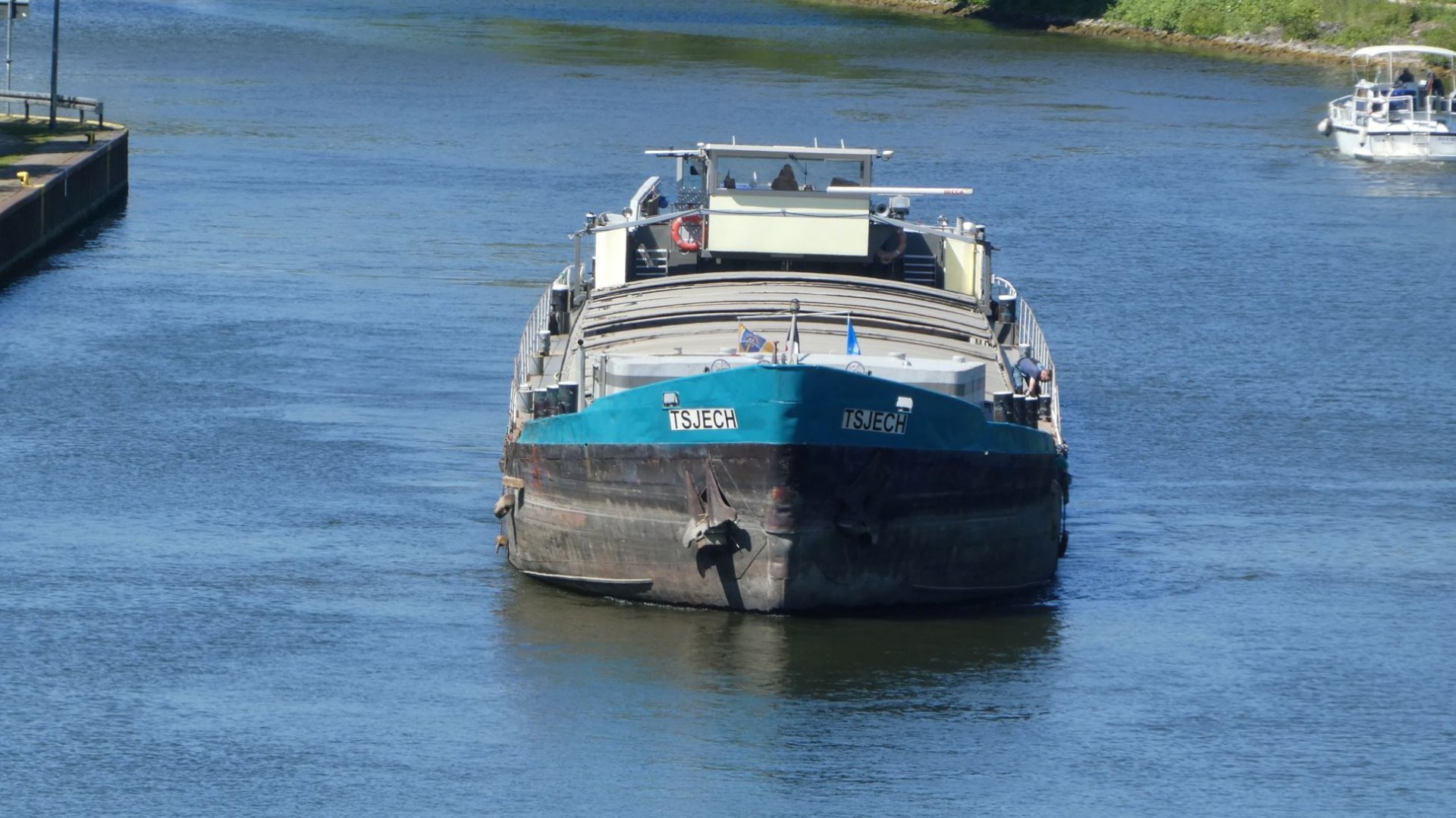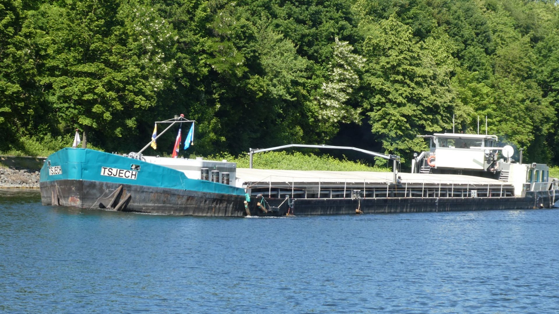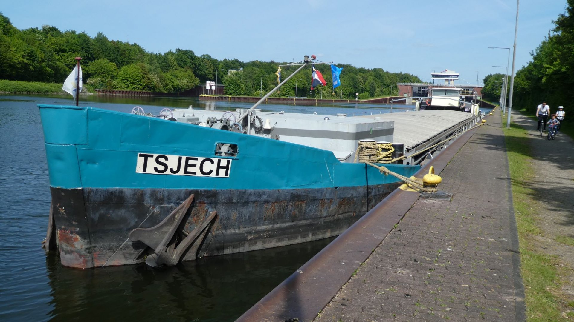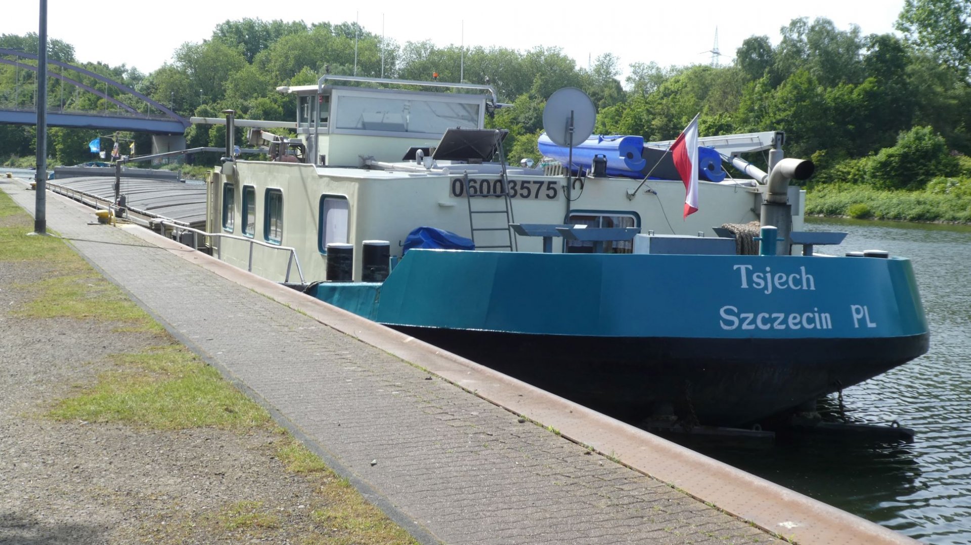die Tsjech lag im UW der Schleuse Herne, und ein Tag später Richtung Mühle.