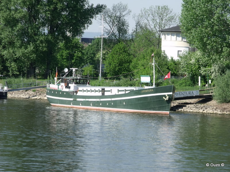 als ich dieses schöne Schiff zum 1.Mal sah (an der Lände in der Nähe von Fort Malakoff in Mainz), habe ich mir notiert: Segel- und Yachtschule für Hochsee- Küste- Binnen. So stand es am Schiff. Gemeint sind natürlich die jeweiligen Patente. Inzwischen habe ich die Aventura des Öfteren auf Fahrten zum Rhein gesehen, denke aber jetzt eher an ein Charter- als an ein Ausbildungsschiff.