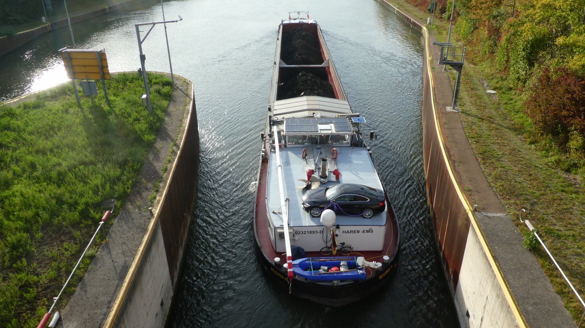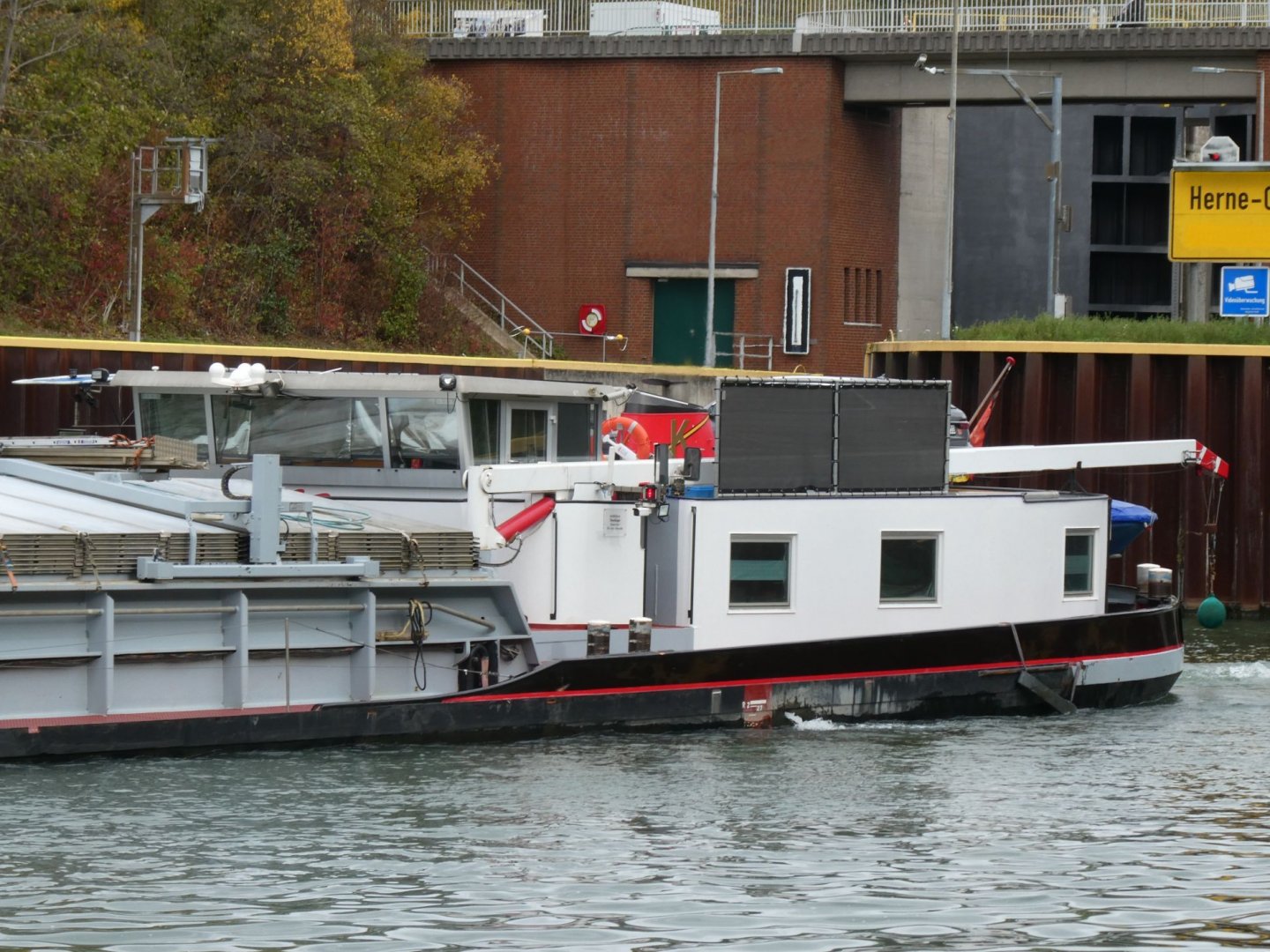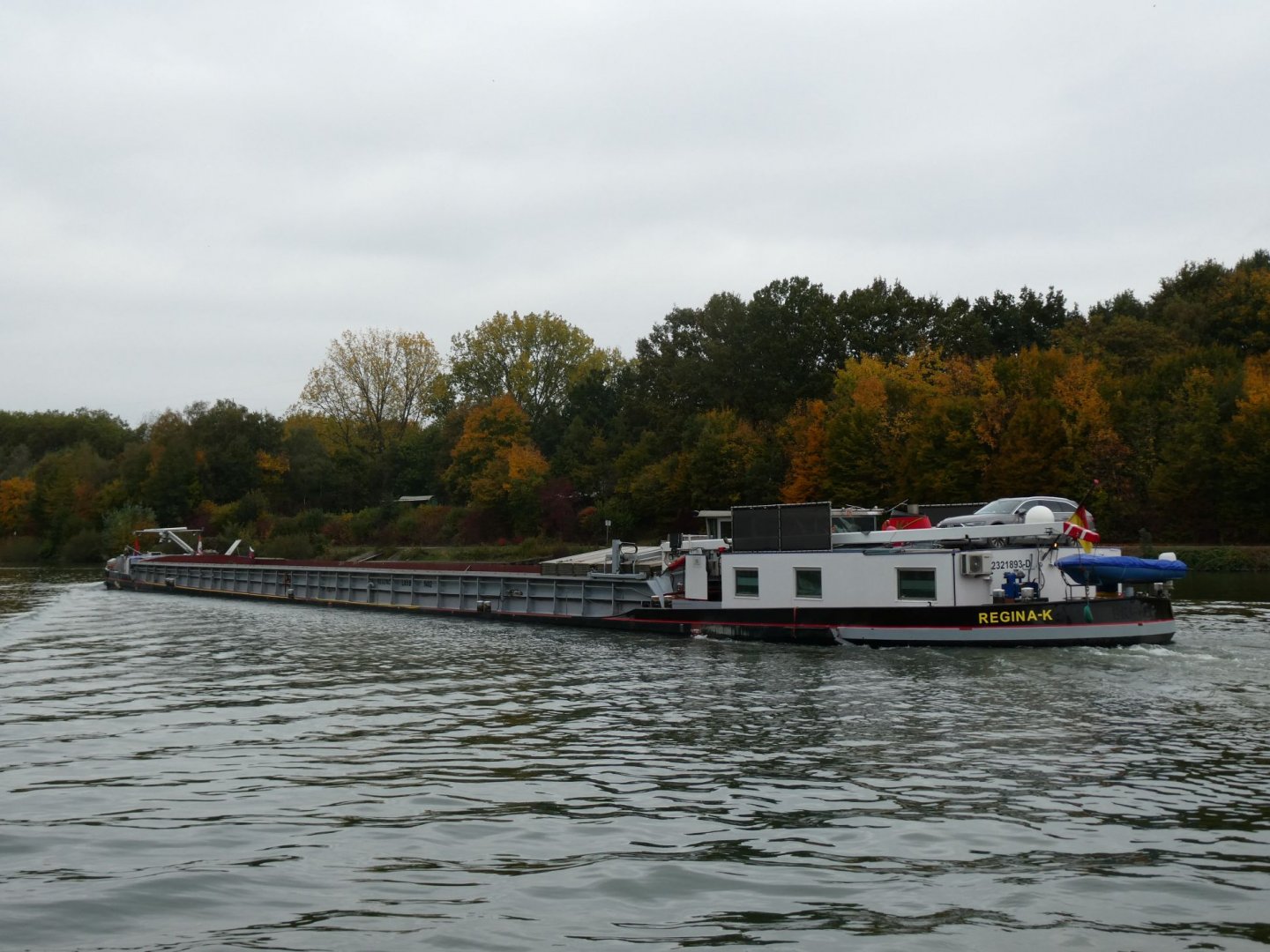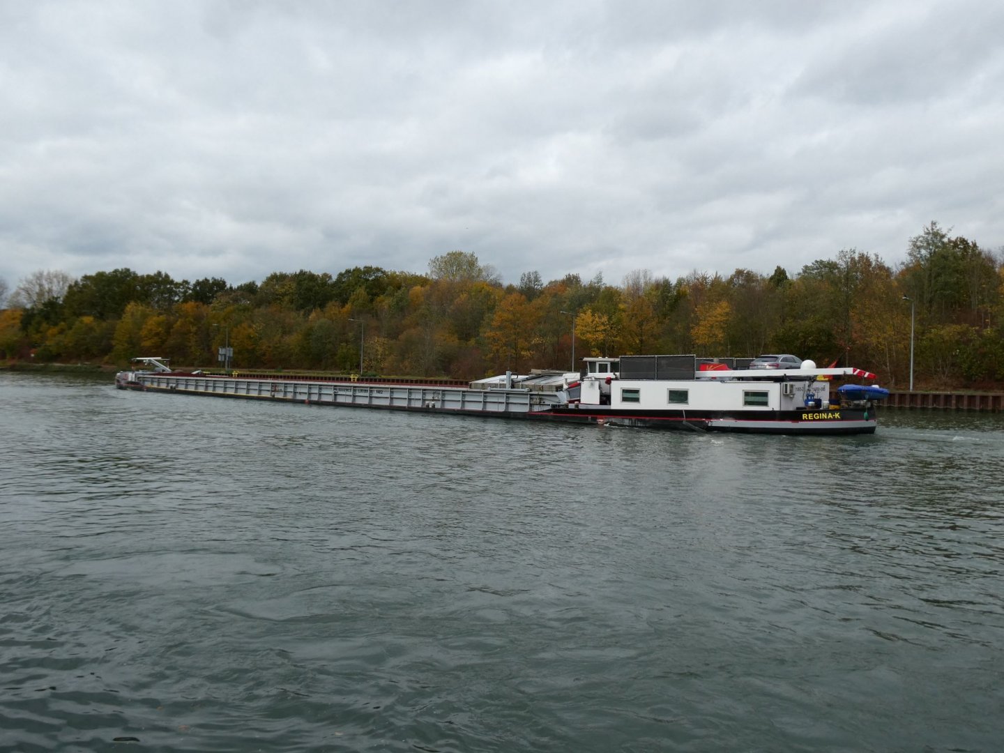 die Regina-K im Okt. bei der Ausfahrt aus der Schleuse Herne-Ost zu Tal.