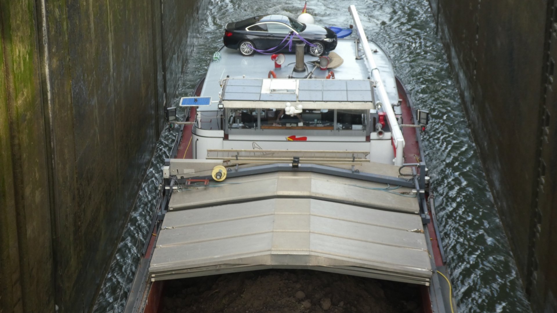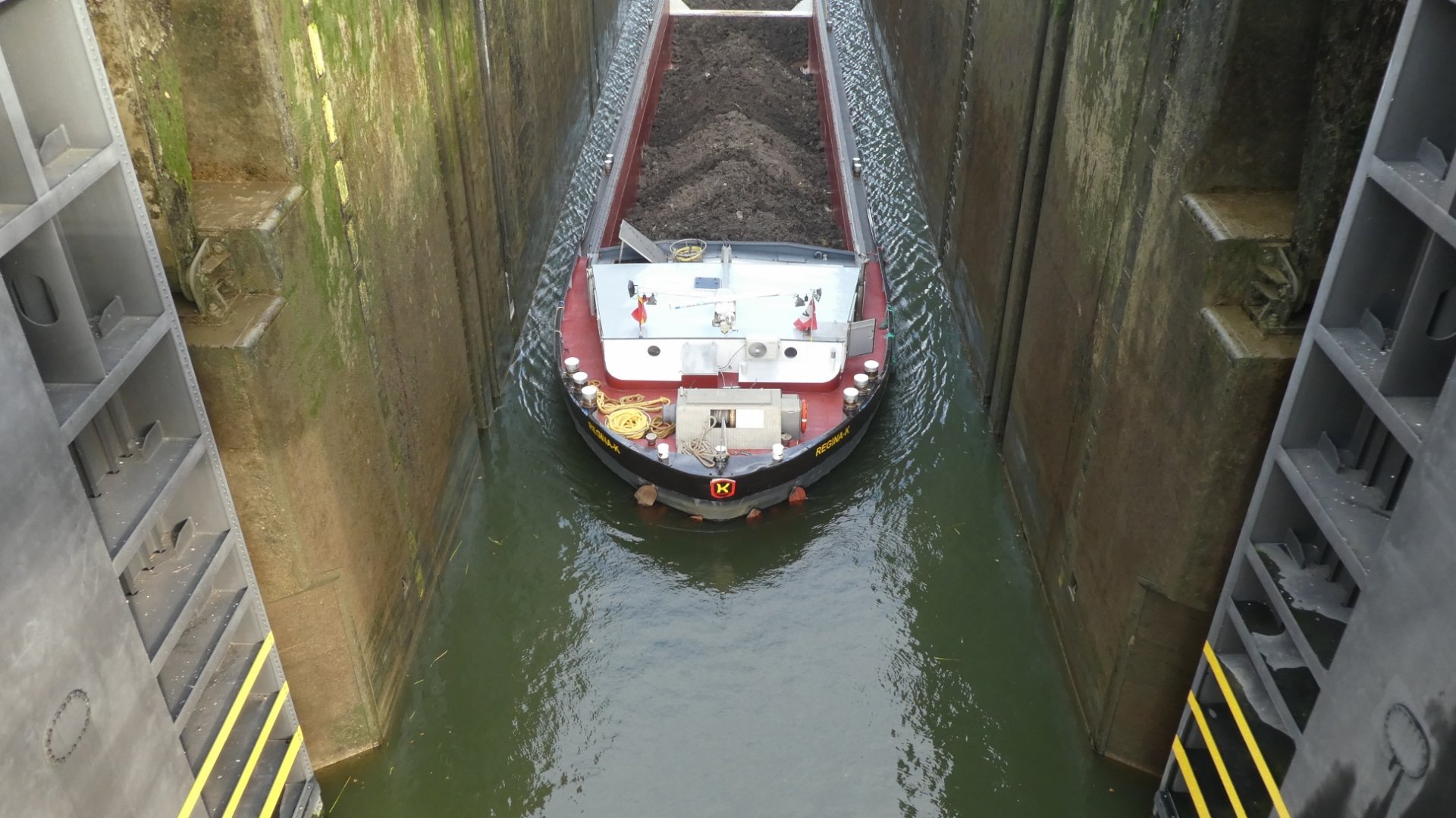 die Regine-K wieder im UW der Schleuse Herne-Ost zu Tal.