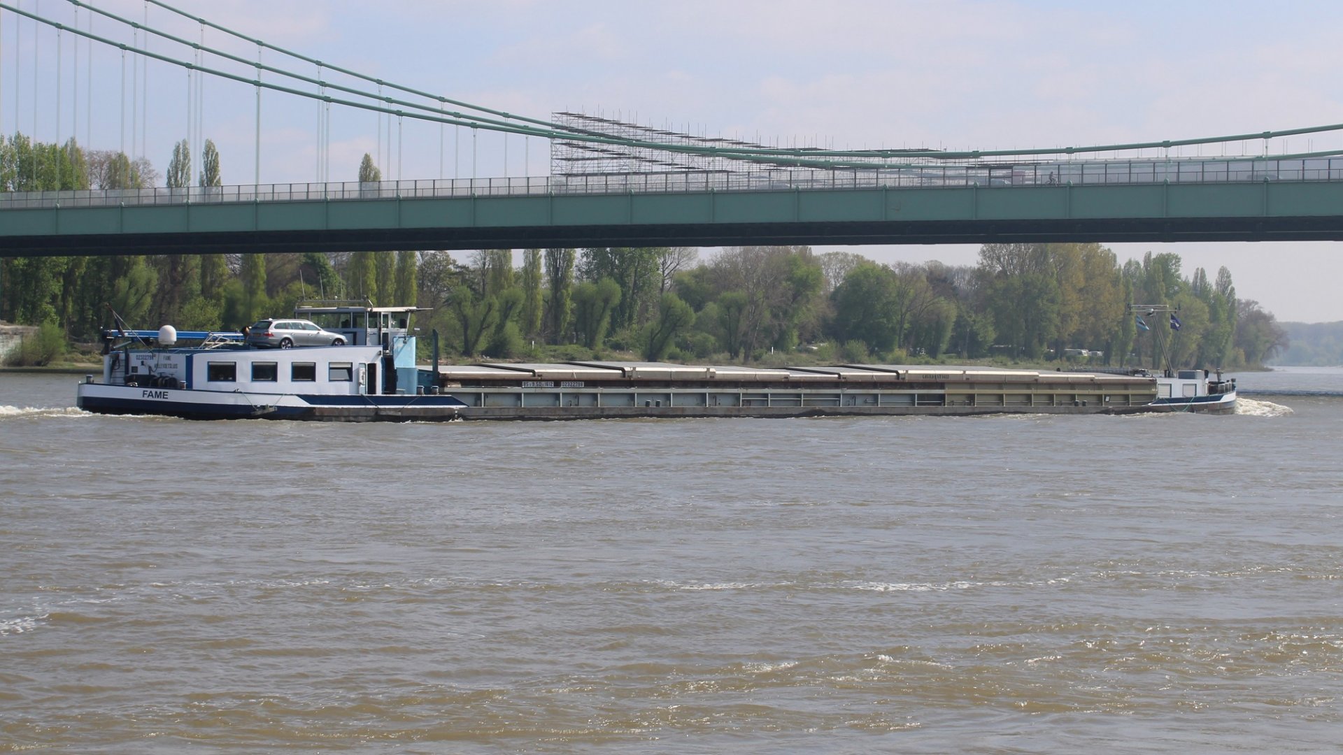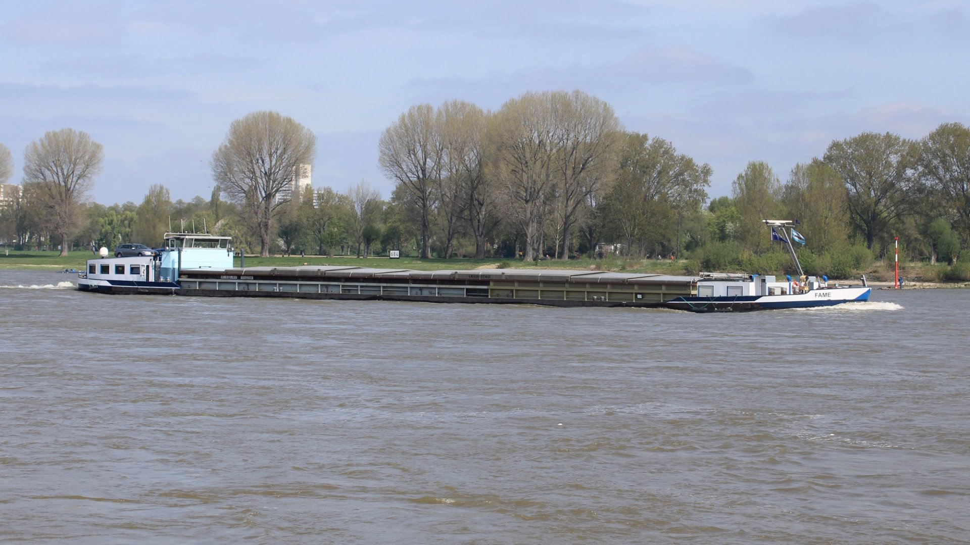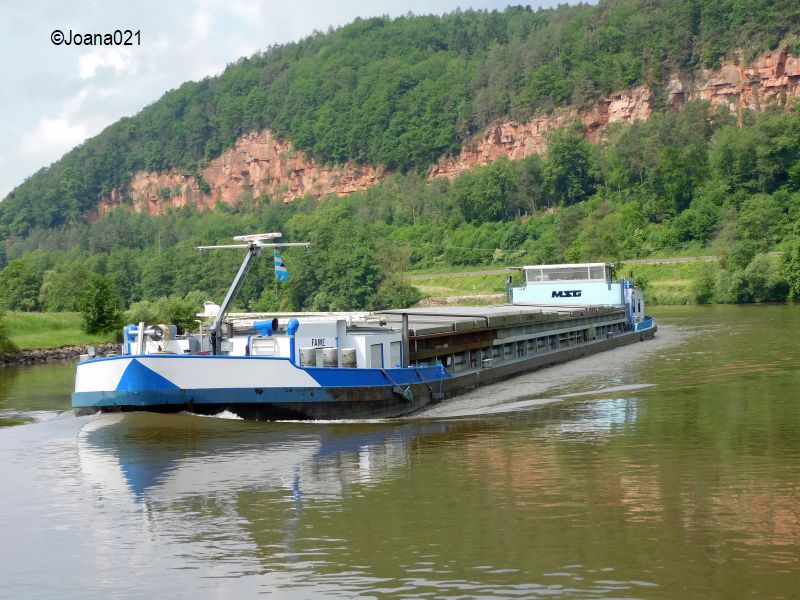 die FAME im Juni 2021 auf dem Main bei Freudenberg in Bergfahrt.