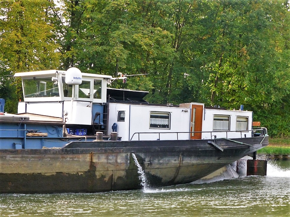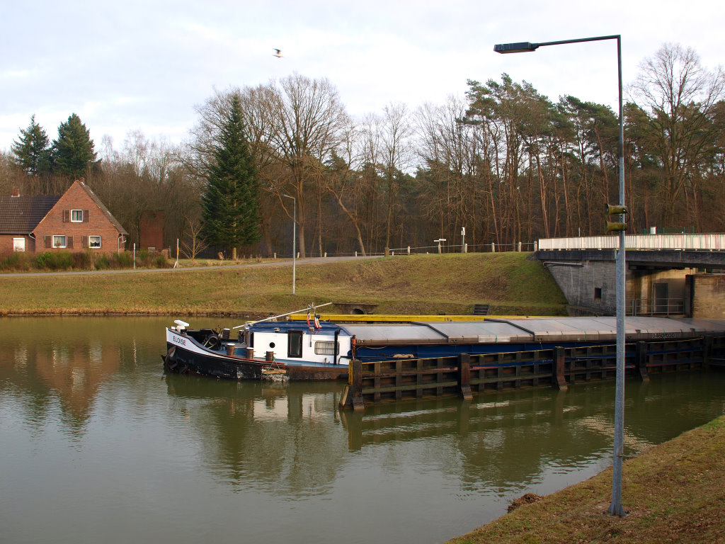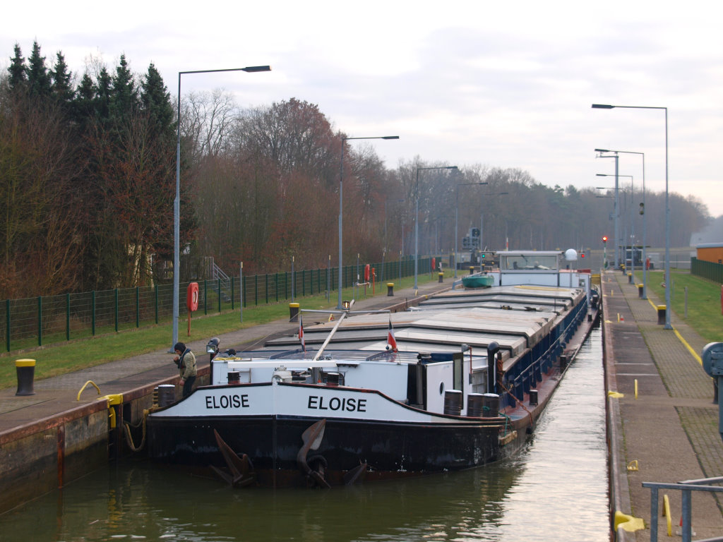 die Eloise bei der Ausfahrt aus der Schleuse Herne-Ost zu Berg.