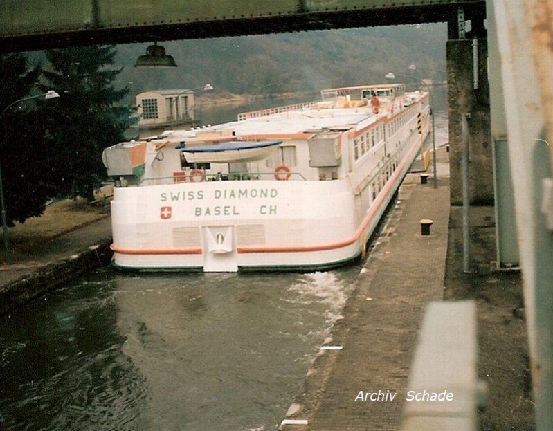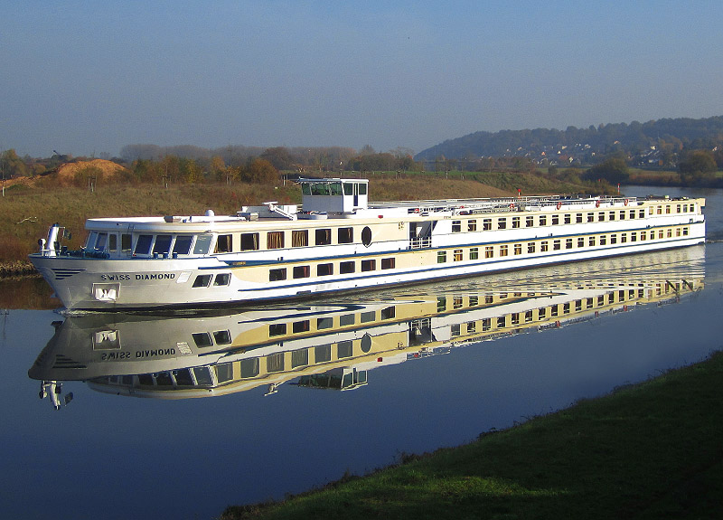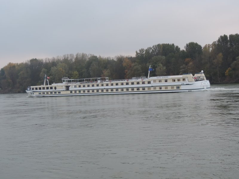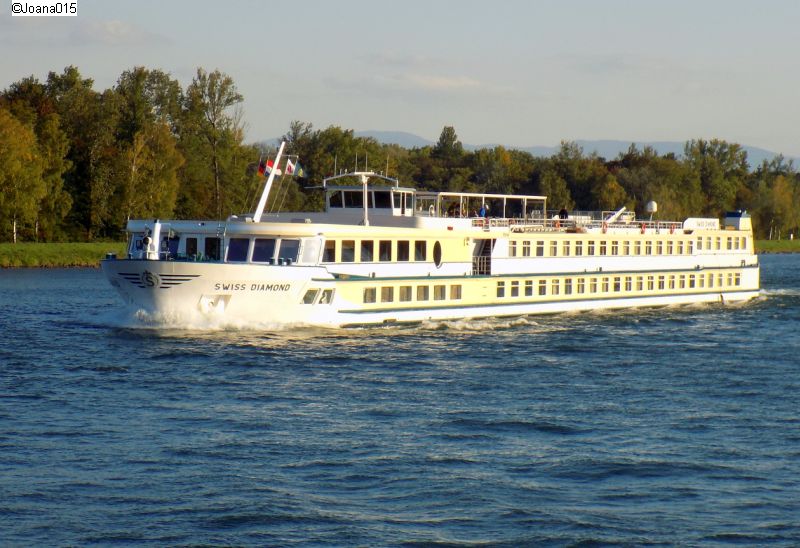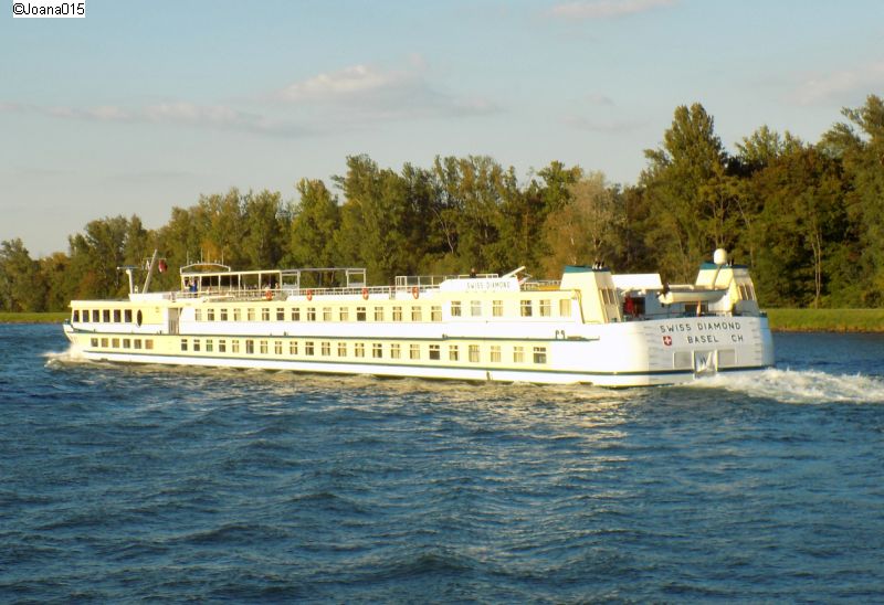 die SWISS DIAMOND im September 2015 auf dem Rheinkanal bei Breisach zu Tal fahrend.