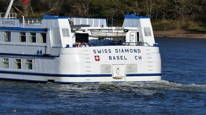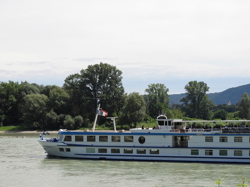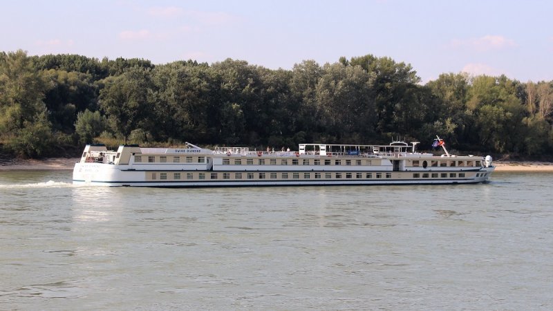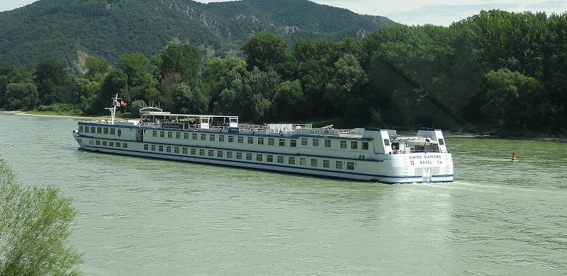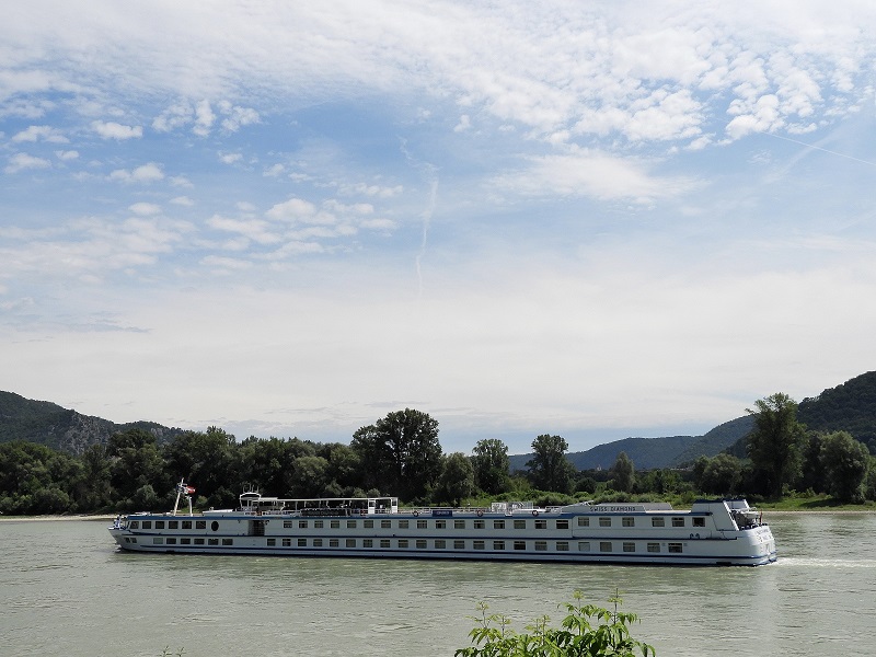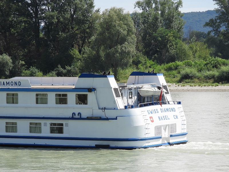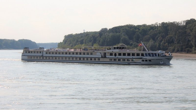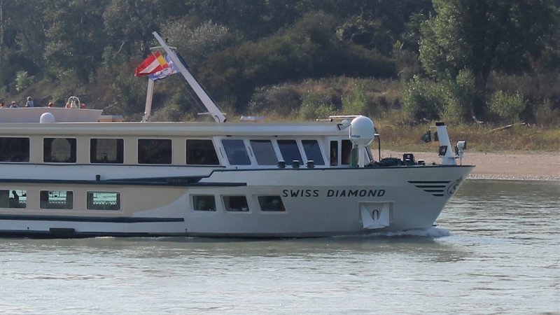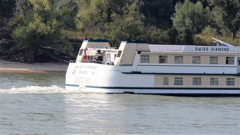 Das Schweizer Flusskreuzfahrtschiff Swiss Diamond habe ich in Hainburg zu Tal fahren gesehen.