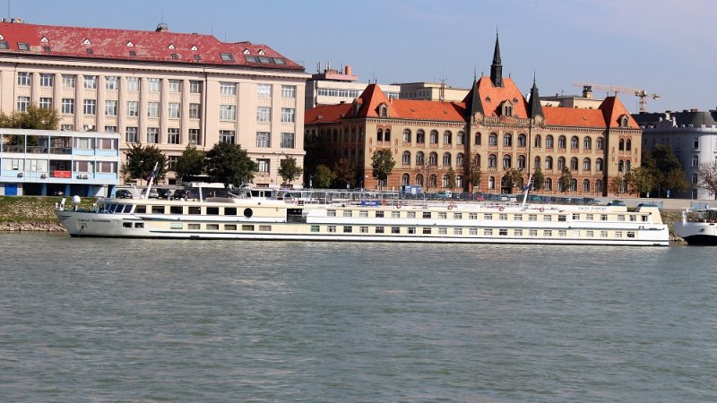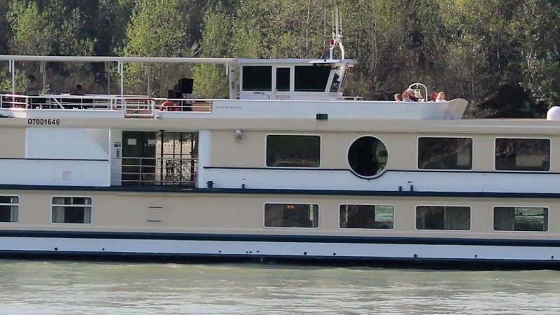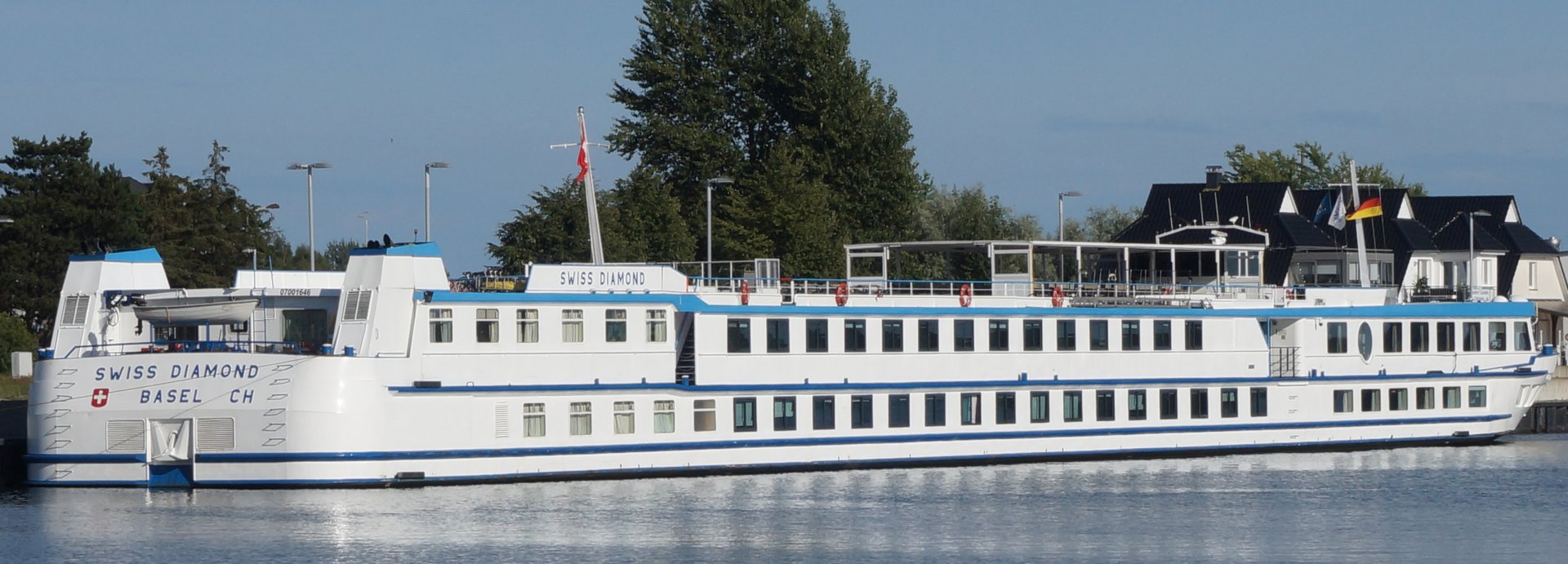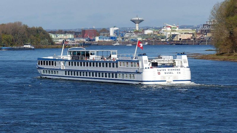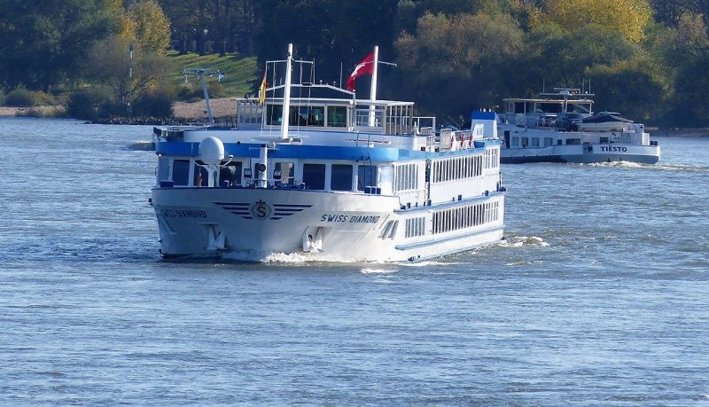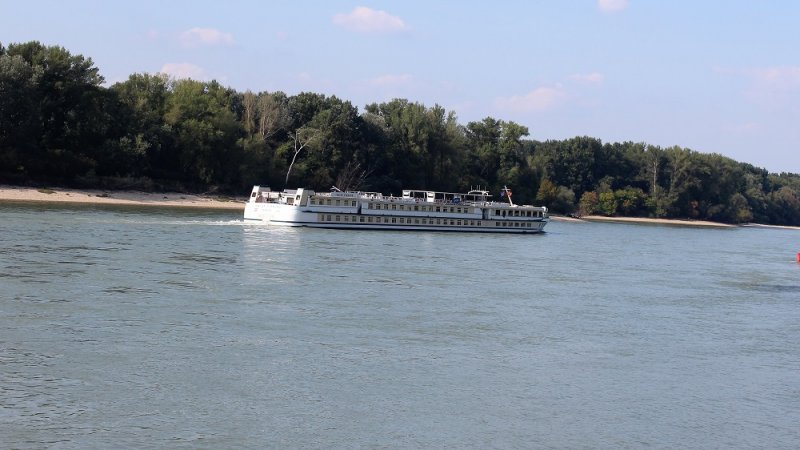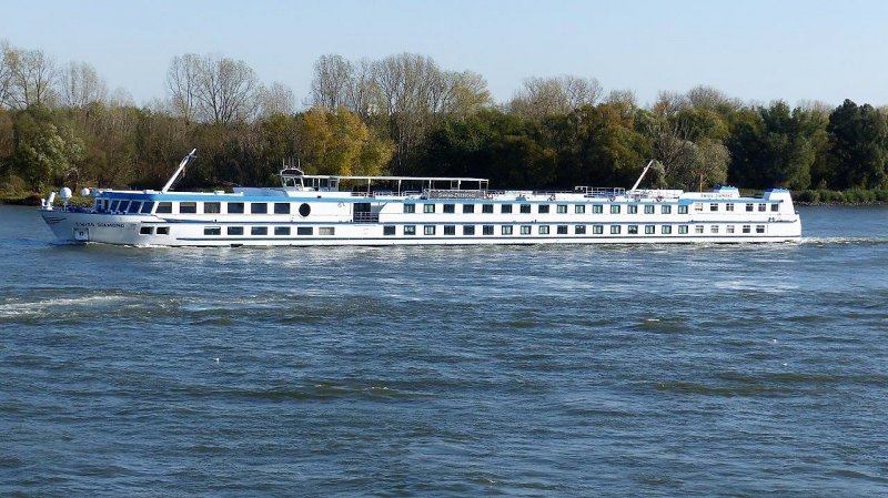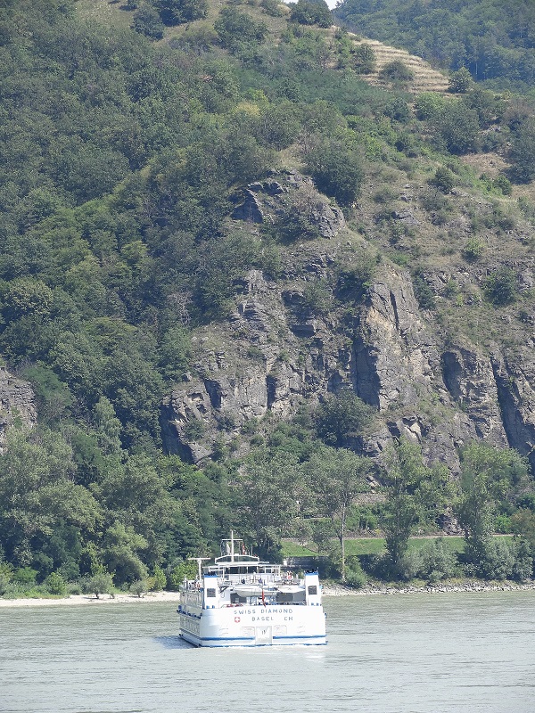 Das Schweizer Flusskreuzfahrtschiff Swiss Diamond habe ich in Hainburg zu Tal fahren gesehen.