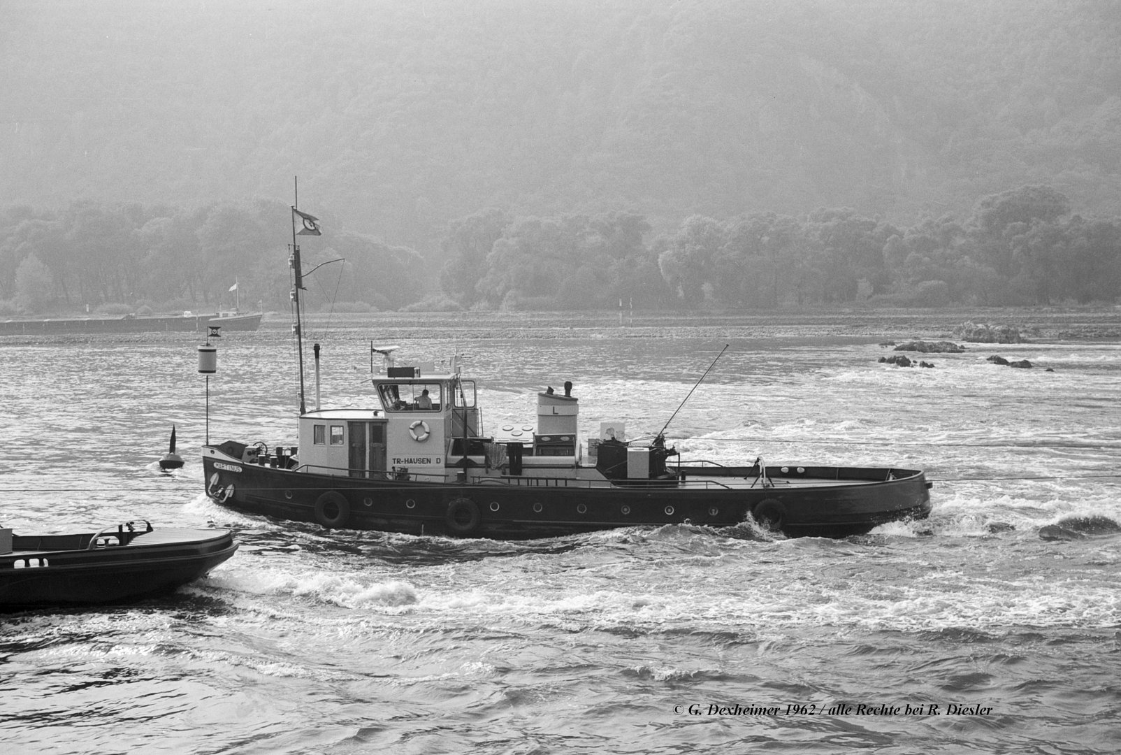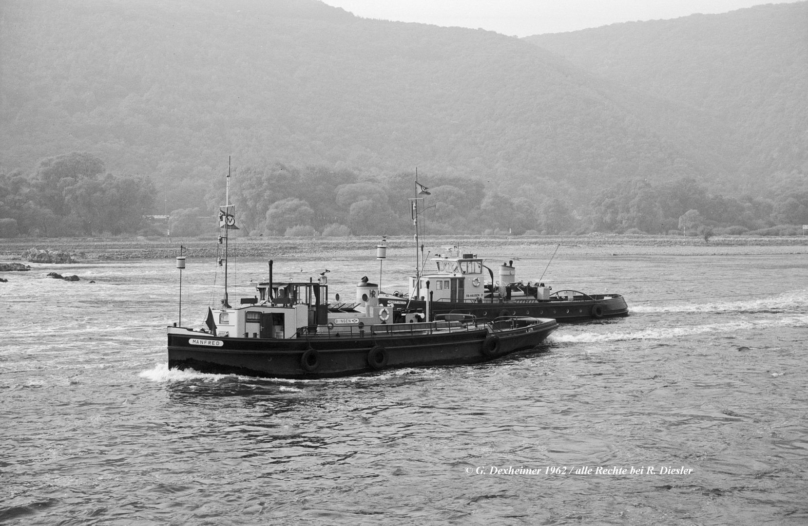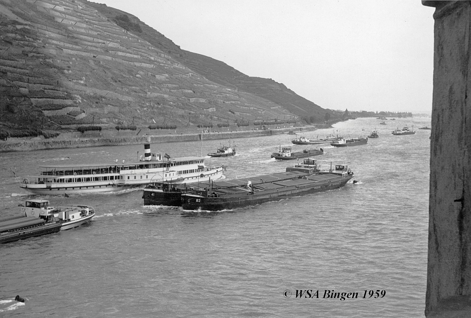 Zur Freigabe einer Fahrrinnentiefe von 2,10m unter GlW im unteren Bereich des Rheingau (Binger Reede / Rüdesheim) musste der Wasserspiegel daher um ca. 20cm erhöht werden, dazu wurde das in #18 dargestellte Leitwerk konzipiert. Eine detailliertere Beschreibung, auch zum Bauablauf, findet sich in meinem Beitrag "Die Nachregelung der Binger-Loch-Strecke" in ZfB Nr. 17 vom September 1994 (auch im HTG-Jahrbuch 1994 abgedruckt).