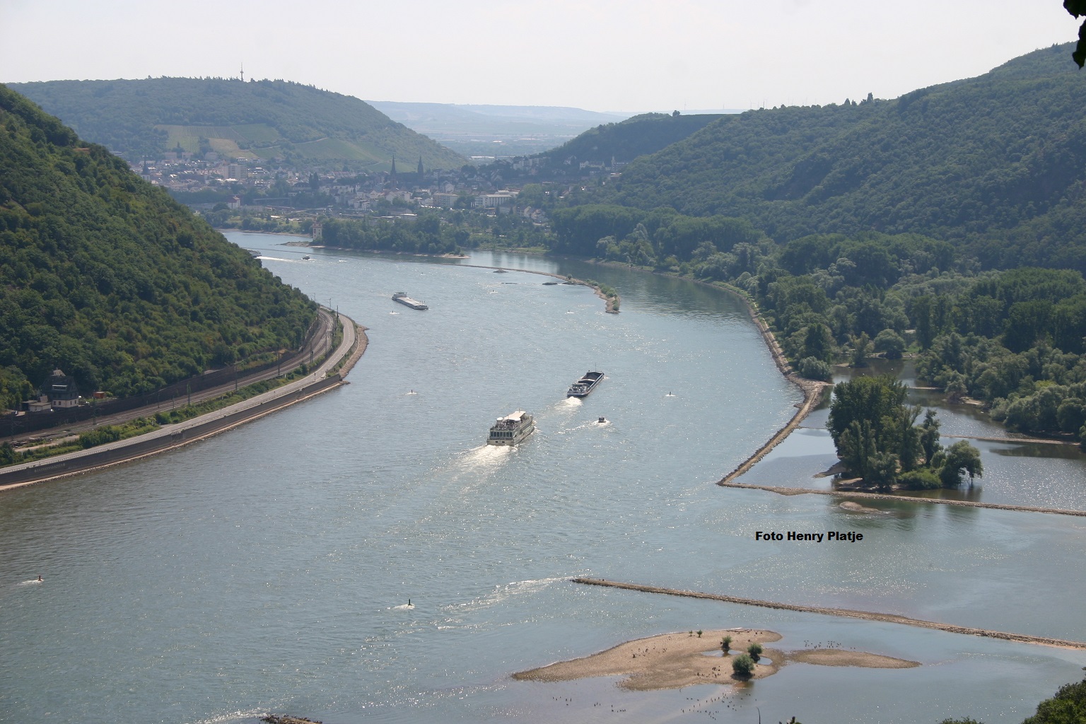 - Teilweiser Verbau des Abflussquerschnittes durch Unterwasserinseln um die Krausaue und um die Rüdesheimer Aue auf der Stromstrecke zwischen Bingen und Rüdesheim