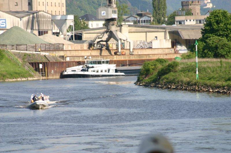 Hier ein häufiger Rheinfahrer, das GMS Ideaal bei der Bergfahrt in Mainz, am 09.05.2009