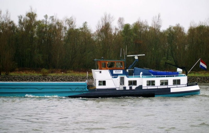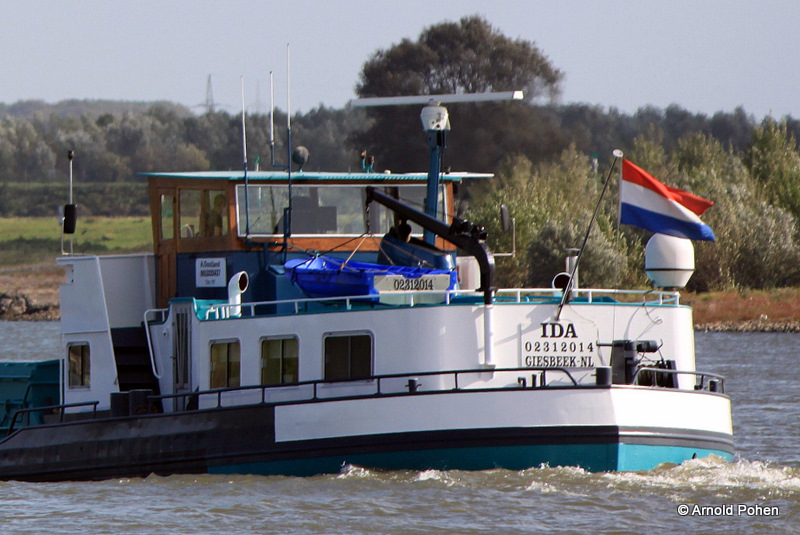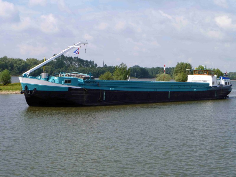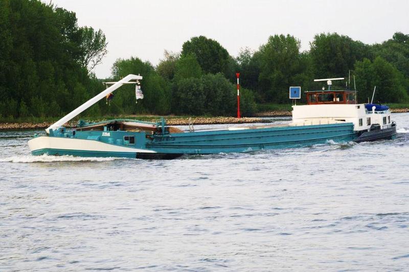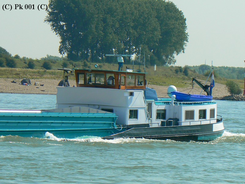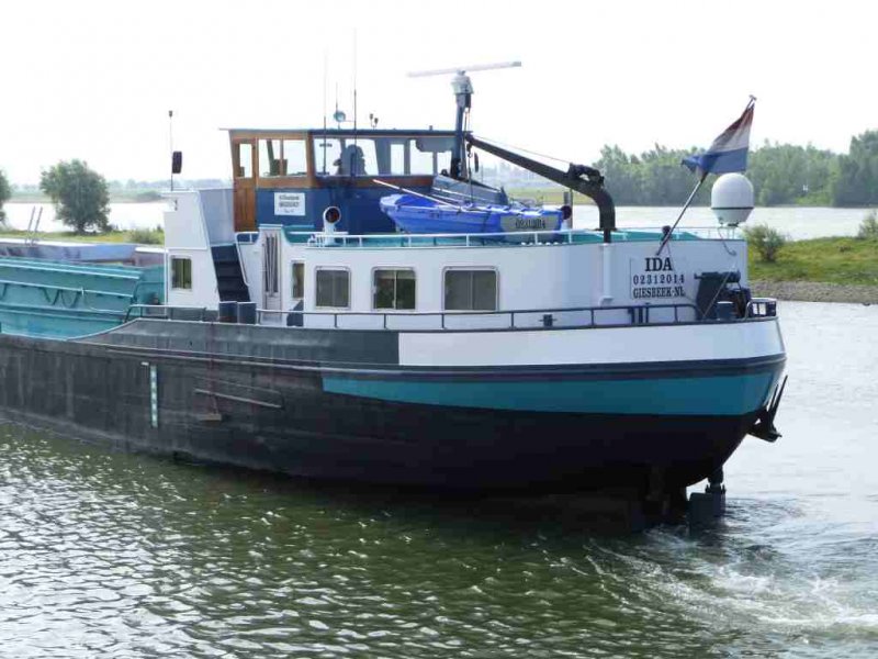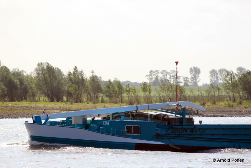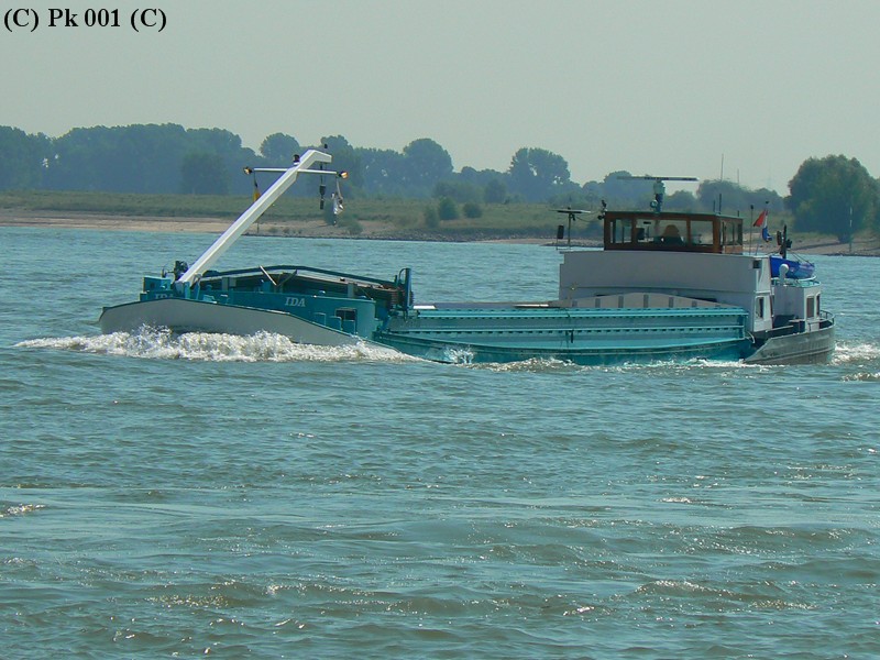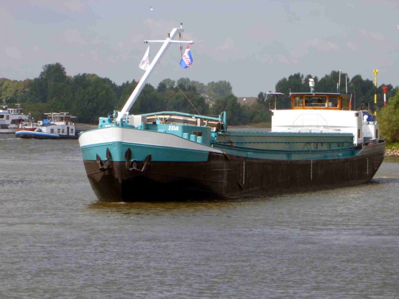 Hier das GMS Ida bei der Talfahrt auf dem Rhein, im Aug. 2009.