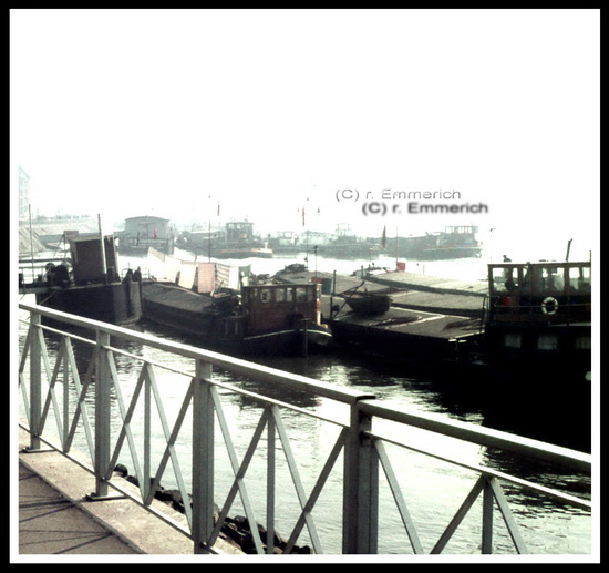 Ahoi, eine s/w Ak, muß die sechziger Jahre sein, richtig Betrieb da in Emmerich, das Zollboot und das Spidoboot haben voll zutuen mit dem " Papierkram ". MfG Mittelpoller