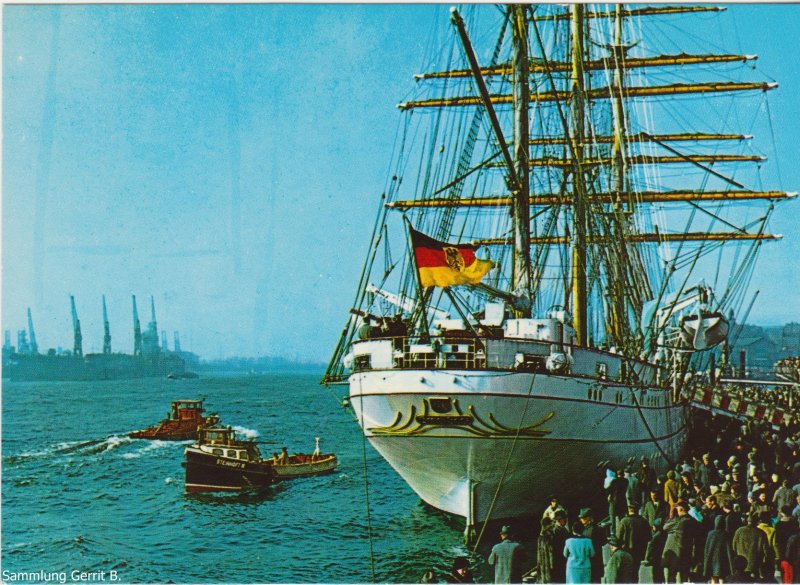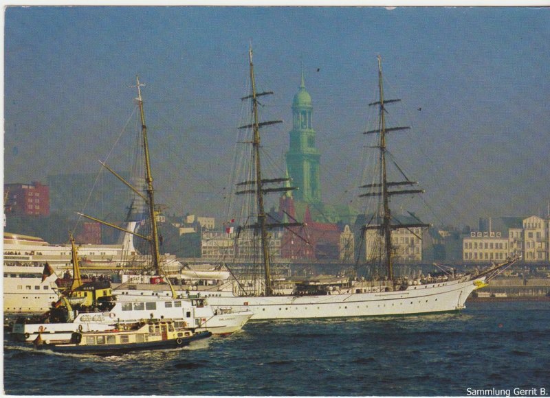 Hallo, habe noch einige Hafenansichten gefunden ; Ak 1 : Blick auf der Überseebrücke. Ak 2 : St.Pauli Landungsbrücken. Ak 3 : die " Gorch Fock " in St. Pauli an den Landungsbrücken. Ak 4 : Segelschulschiff " Gorch Fock " im Hafen. MfG Mittelpoller