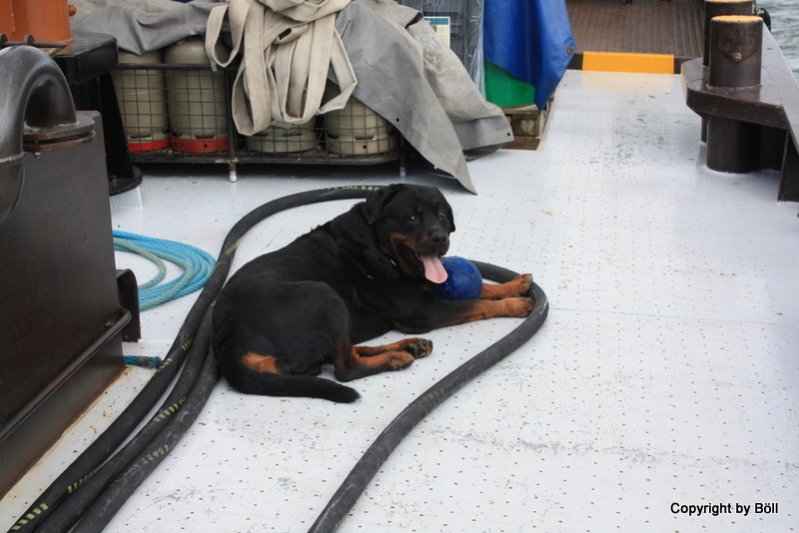 "Dolly" ist ein Bordhund der besonderen Art, sie kommt aus Zypern und liebt die Sonne, an Bord der OLDENBURG.