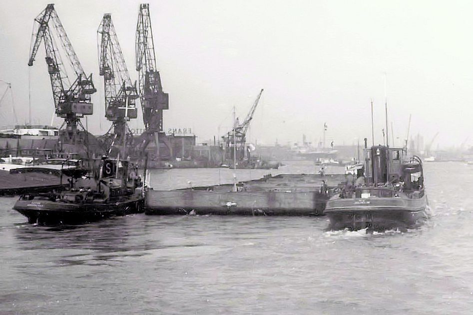 Im Januar 1958 fanden die erste Schubfahrten mit den sogenannten 'Schwerlastflösse" von Reederei Krupp statt. In die erste Jahre wurden diese Schubleichtern noch geschubt von zwei Schleppboote welche an der Hinterseite an Backbord und Steuerbord festgemacht hatten.