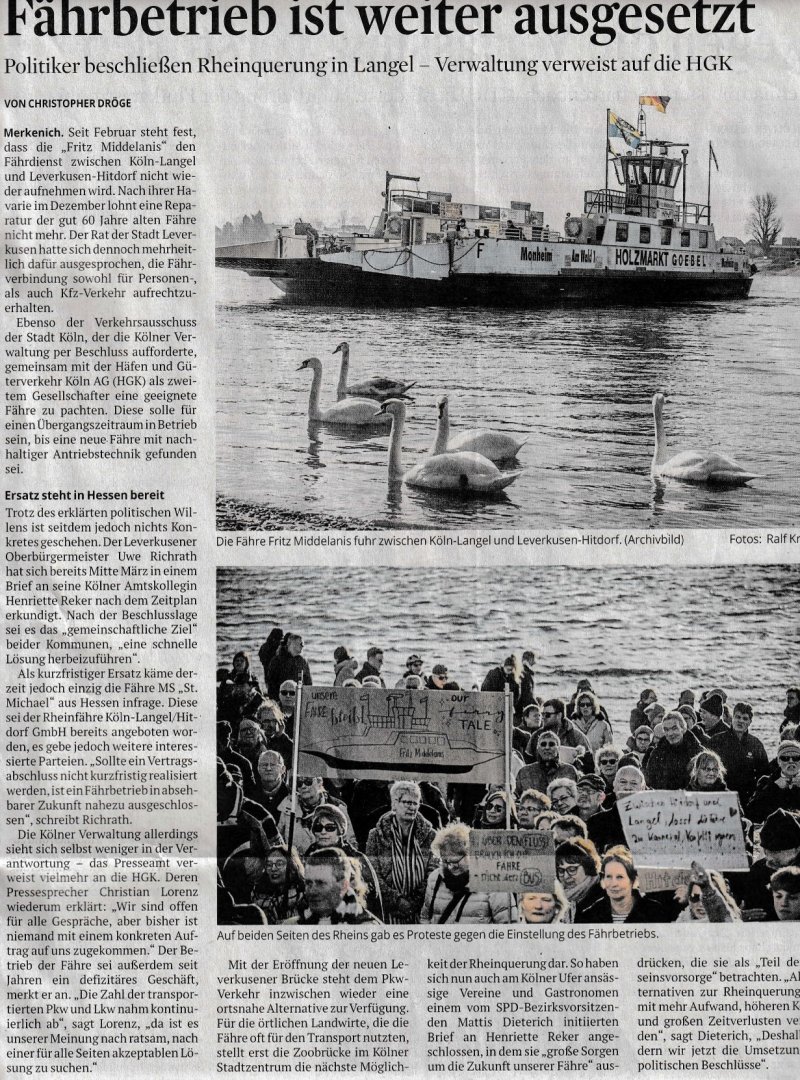 ...und heute wieder ein aktueller Bericht im KStA mit dem Titel "Fährbetrieb ist weiter ausgesetzt".
