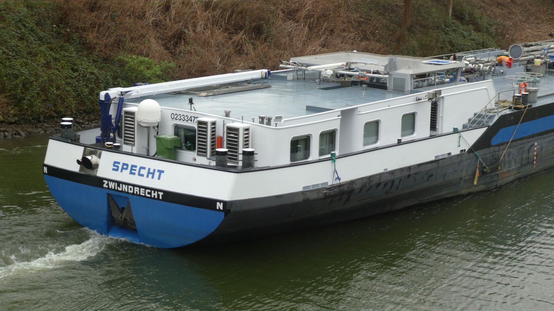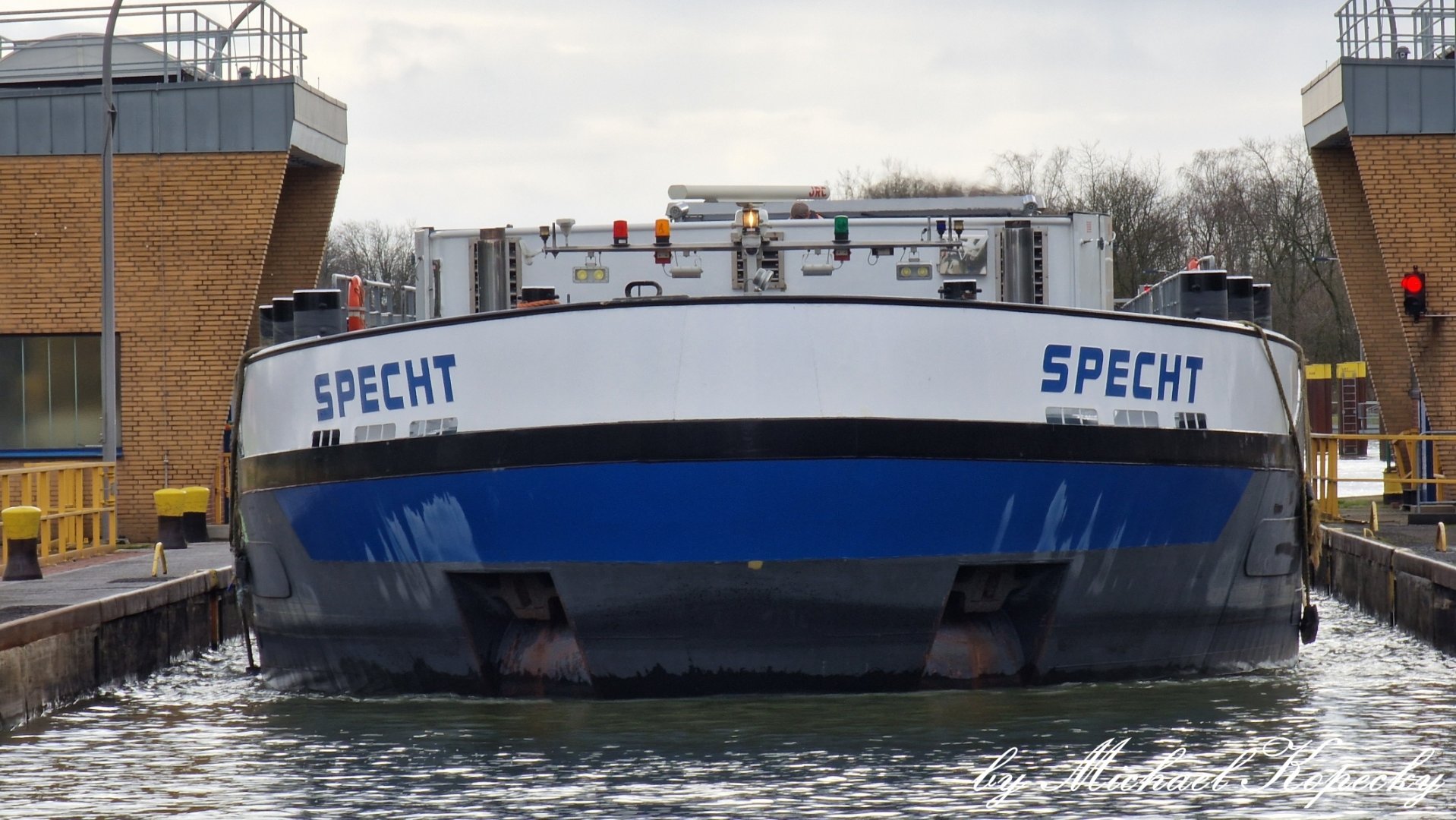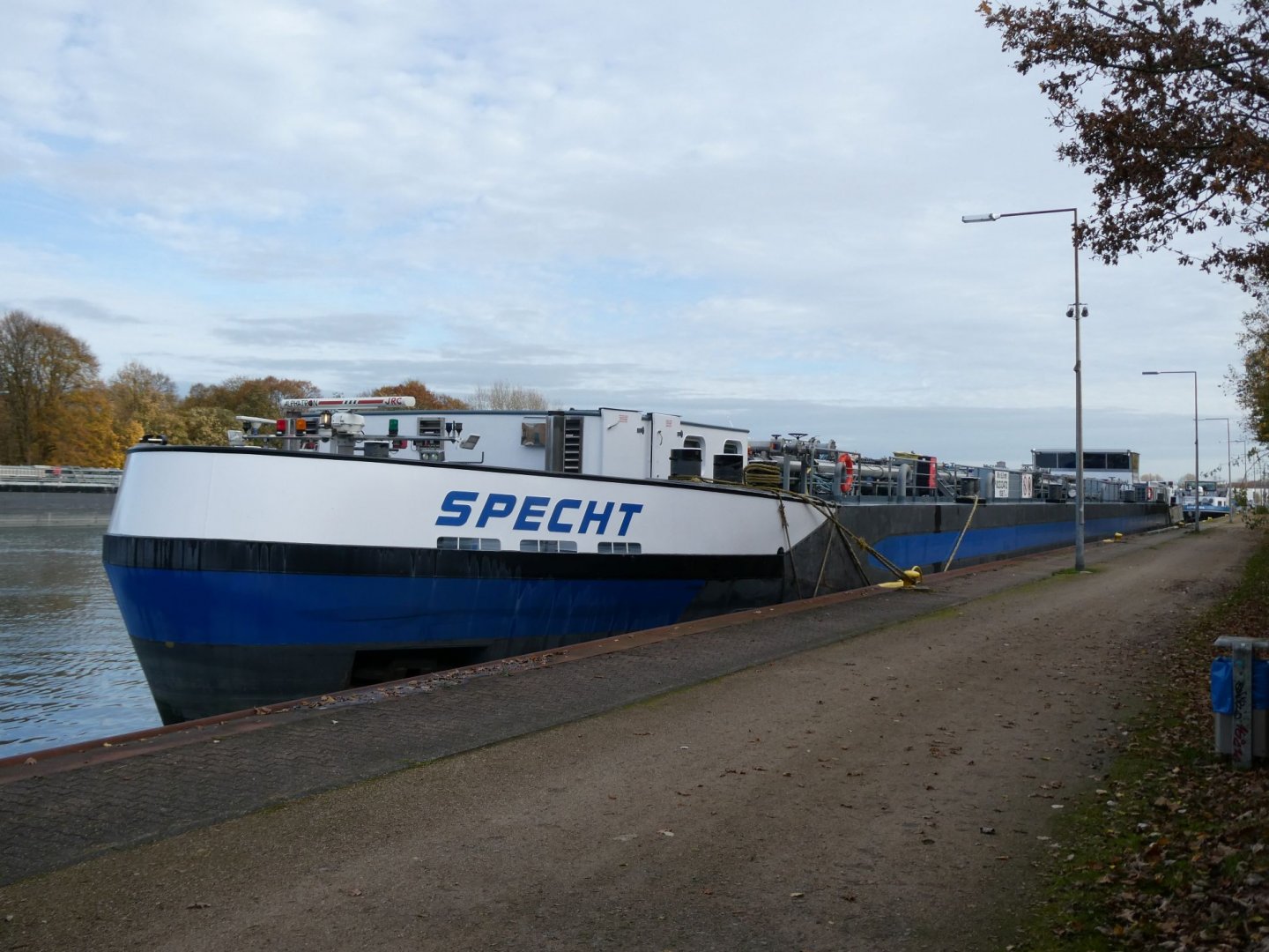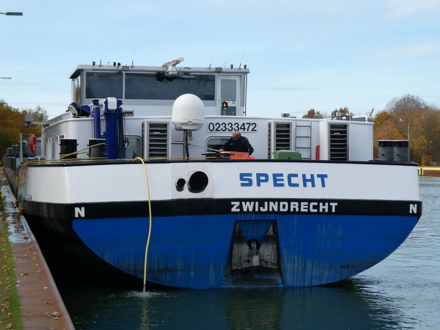 TMS Specht lag im Nov. 2025 im OW der Schleuse Herne-Ost.