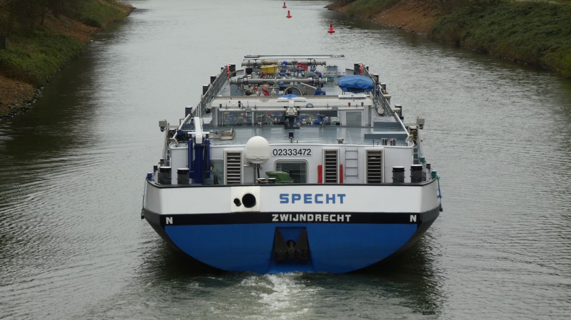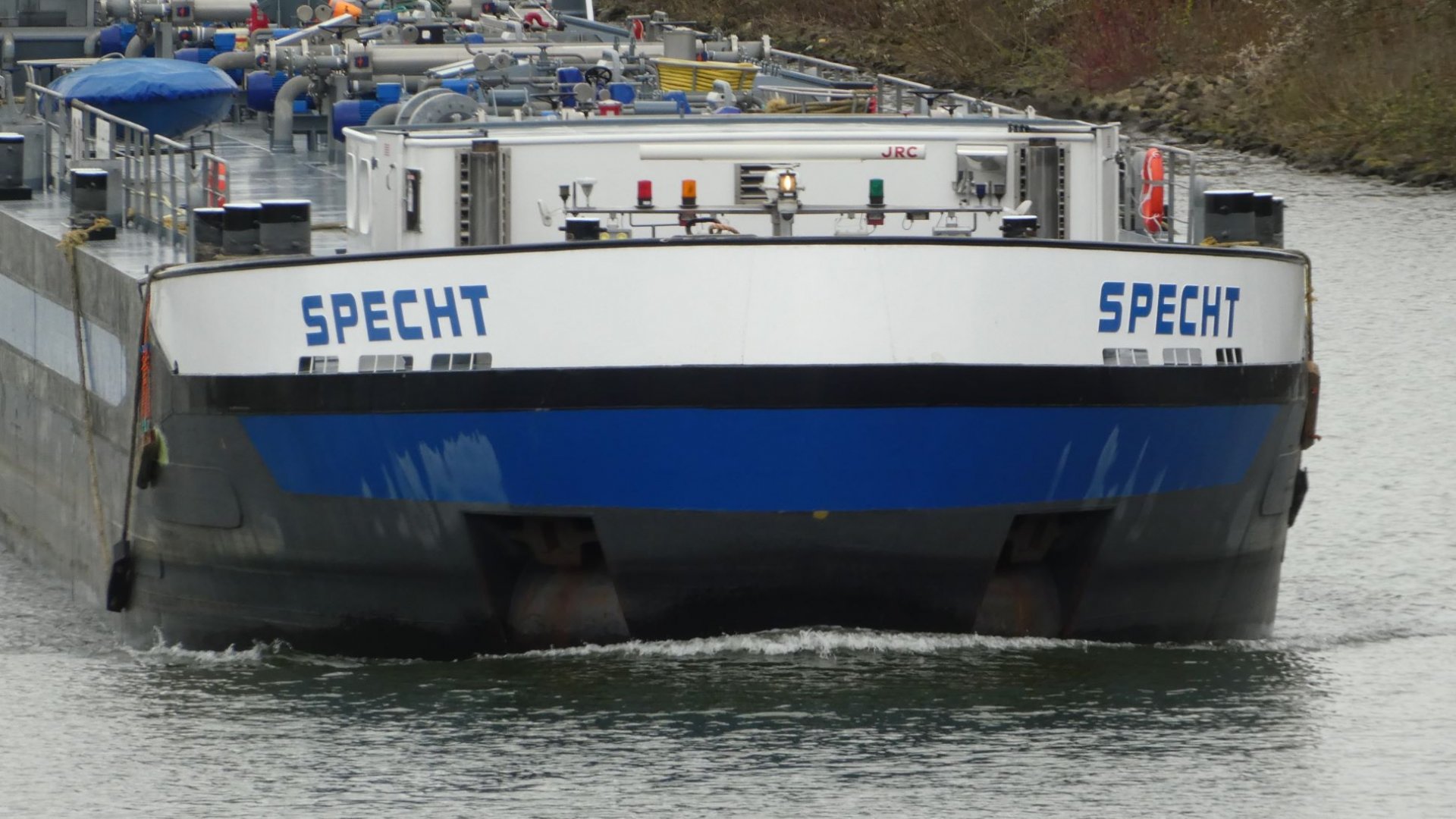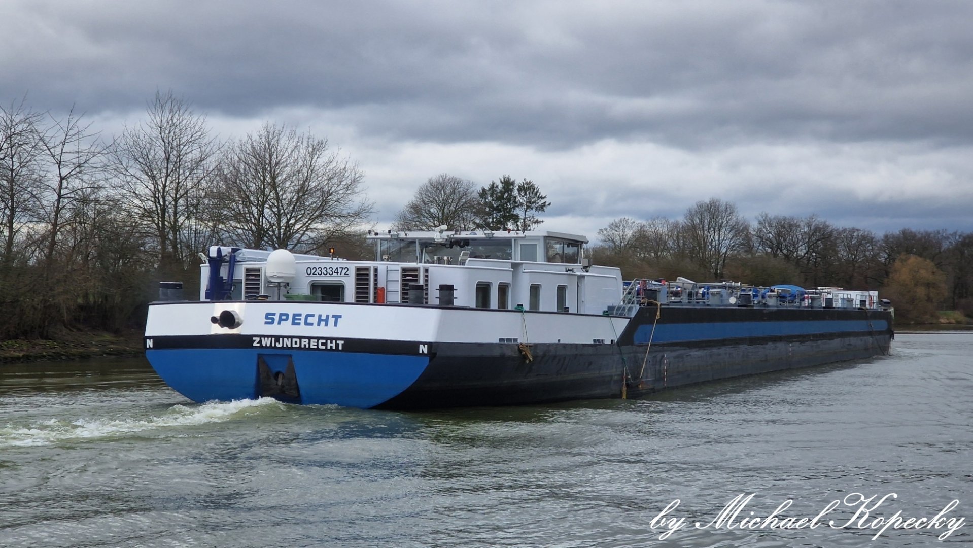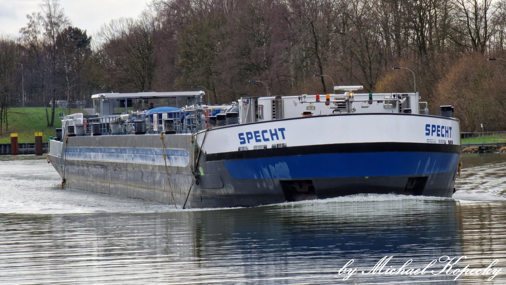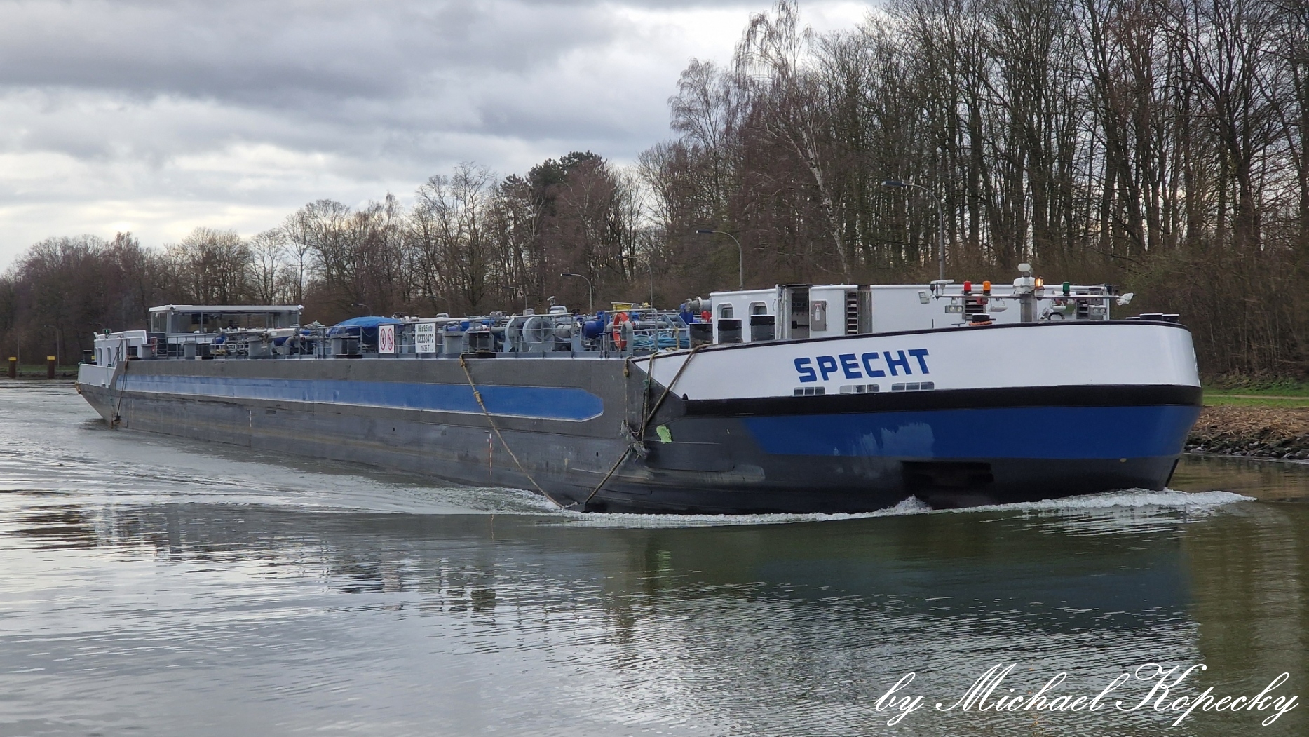 TMS Specht lag im Nov. 2025 im OW der Schleuse Herne-Ost.