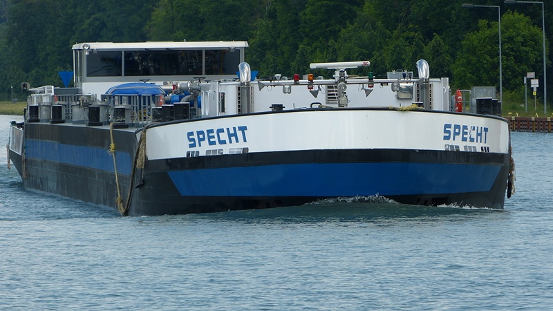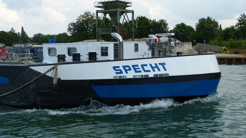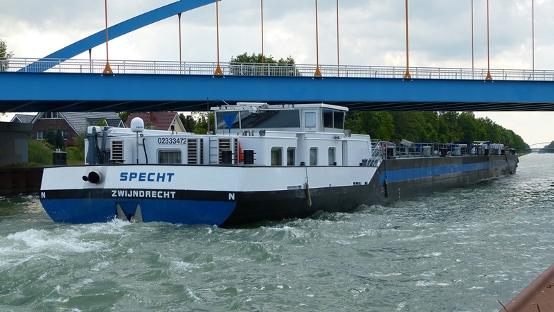 Die Specht im Juli 2014 an der DEK-Schleuse Rodde zu Berg.