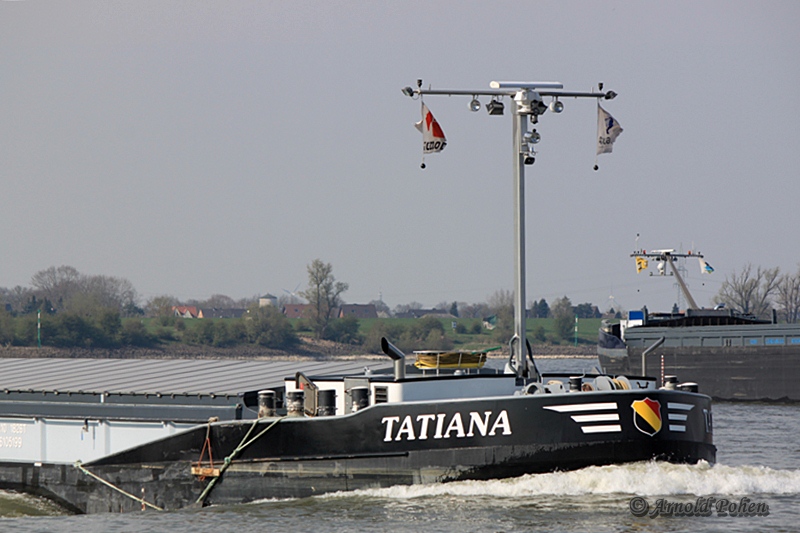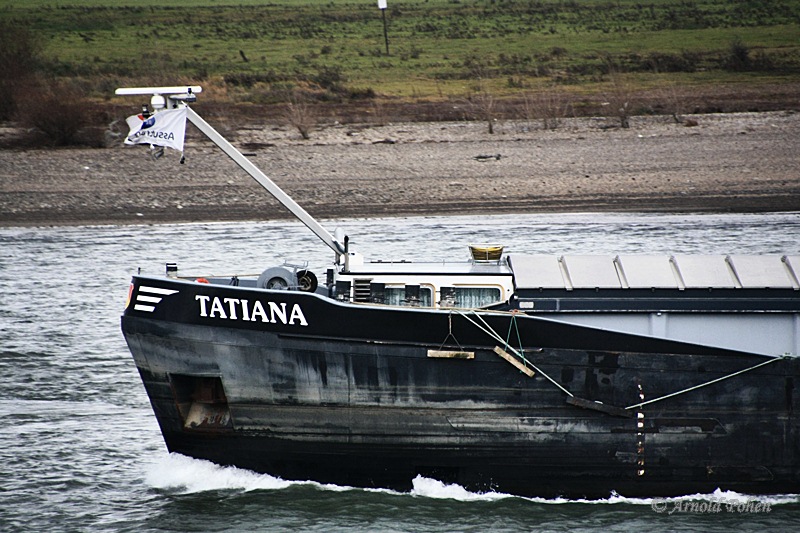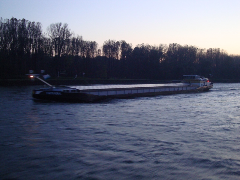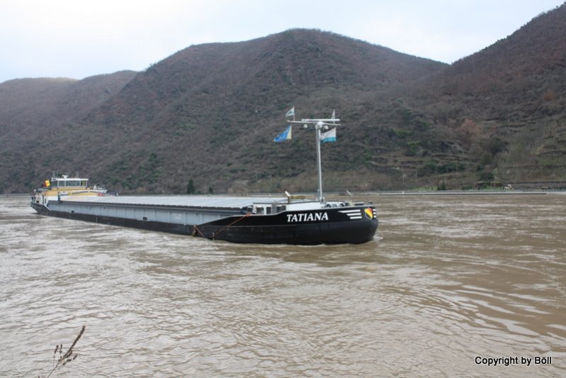 Die Tatiana am 27.11.2011 bei Wesel-Büderich zu Tal.