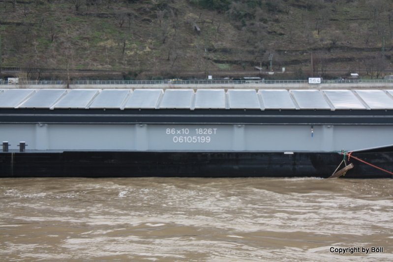 GMS Tatiana in der Hochwassersperre in Bad Salzig.
