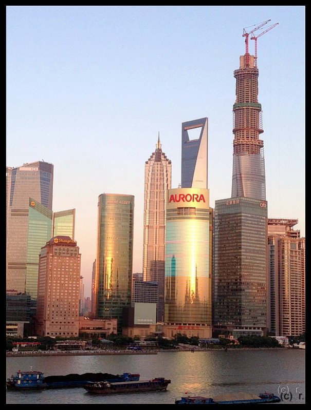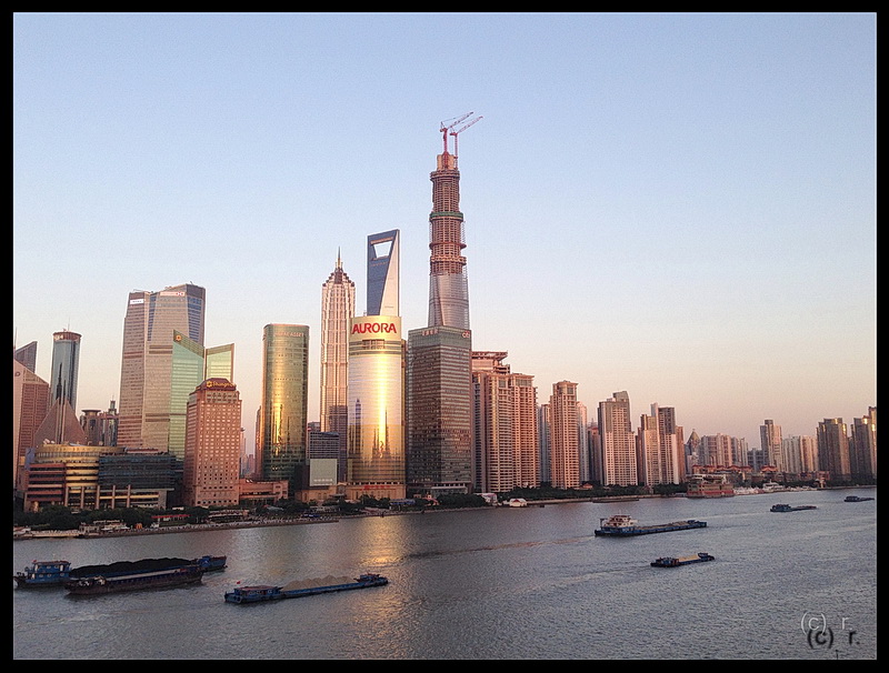Meine Bilder sind an Weihnachten 1983 entstanden. Das "Fehlen" der heutigen Hochhäuser fällt beim Betrachten der Skyline sofort auf. Aber auch beispielsweise in Frankfurt sah die Skyline 1983 noch sehr viel anders aus als heute! Der markante Turm von Shanghai steht übrigens heute auf dem der Stadt gegenüberliegenden (rechten) Ufer des Huangpu.