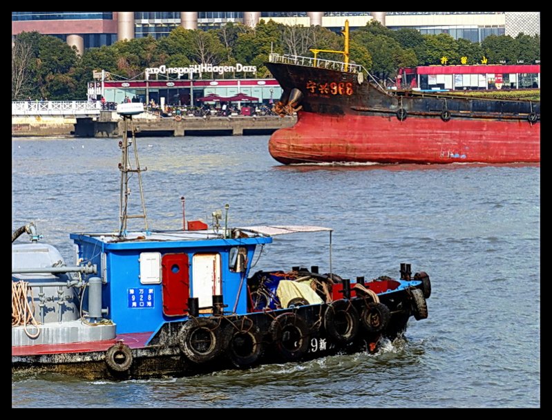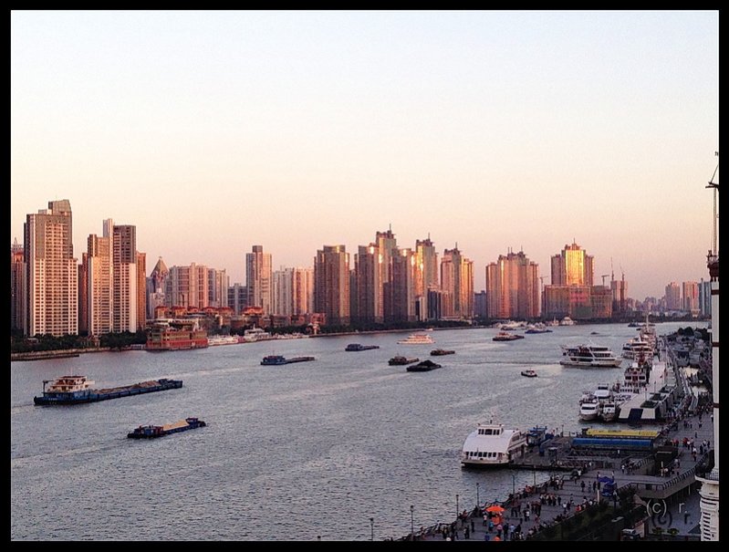 Wenn man von See her in die breite Mündung des Yangtse (der in China Yangtsekiang heißt) hineinfährt, mündet fast noch im Mündungsbereich von links (also am rechten Ufer des Yangtsekiang) der Huangpu. Der Huangpu ist ähnlich wie die Elbe wegen der Seenähe auch für Seeschiffe befahrbar, aber noch breiter und man erreicht auch schon nach 25 Kilometern Shanghai, das dann an Steuerbord liegt (am linken Ufer des Huangpu also). In Shanghai mündet auch der uralte Große Kanal, der den ganzen Osten Chinas von Nord nach Süd entlangläuft und zumindest 1983 immer noch benutzt wurde.