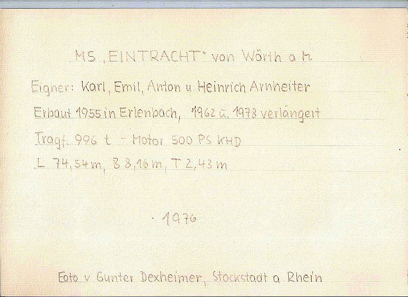 Habe folgendes Foto erhalten, das ich mit freundlicher Genehmigung von Herr Rudi Bauer Schiffsmuseum Wörth a/Main hier zeigen darf. Der Scan mit den Daten ist leider verlustig gegangen aber wir kommen ja wieder nach Wörth.