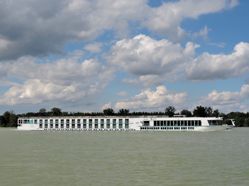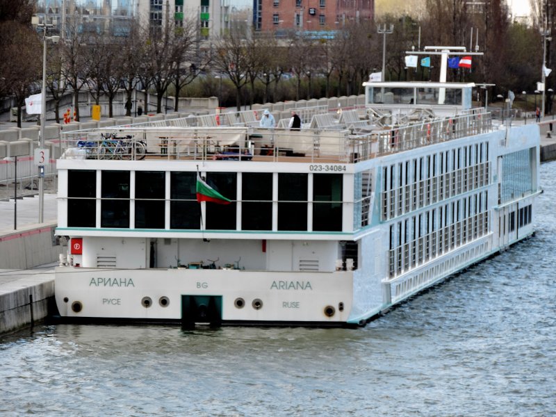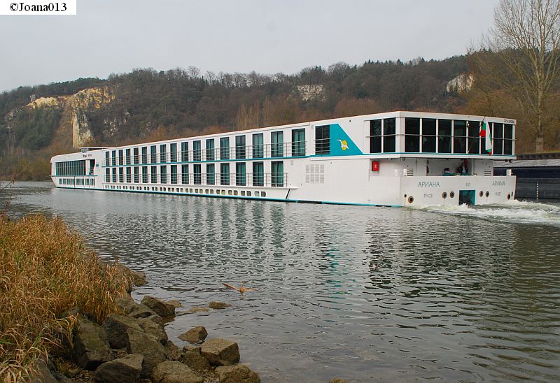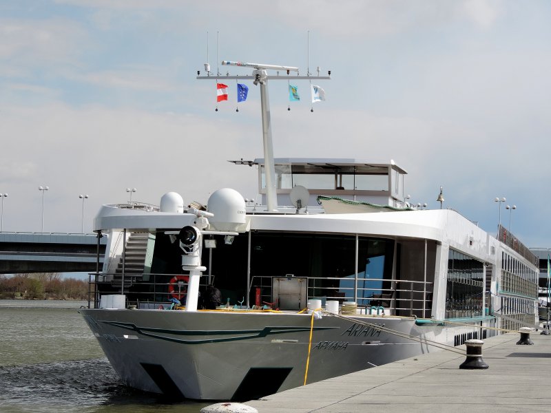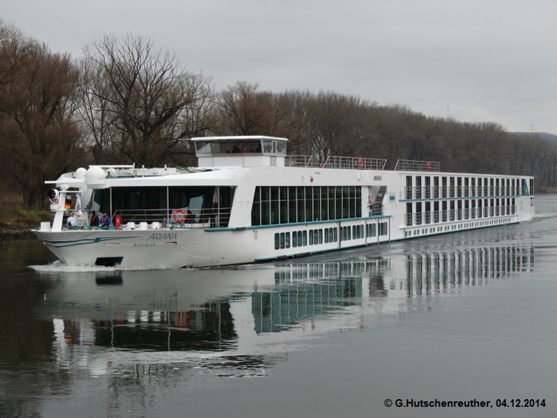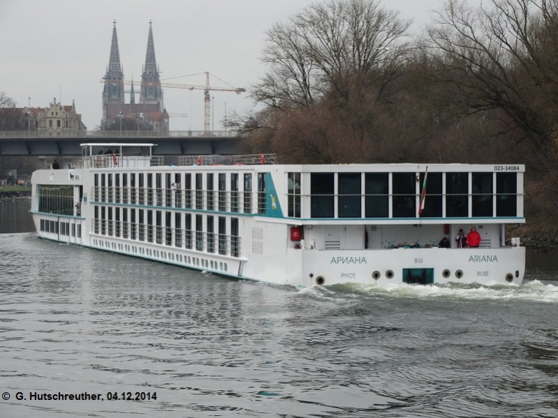 Ein seltener Gast in Regensburg: KFGS ARIANA. Das Schiff fährt normalerweise nur bis Passau. Jetzt in der Adventszeit werden lt. Plan 7 Fahrten zwischen den Christkindlmarkt-Städten Nürnberg und Regensburg durchgeführt.