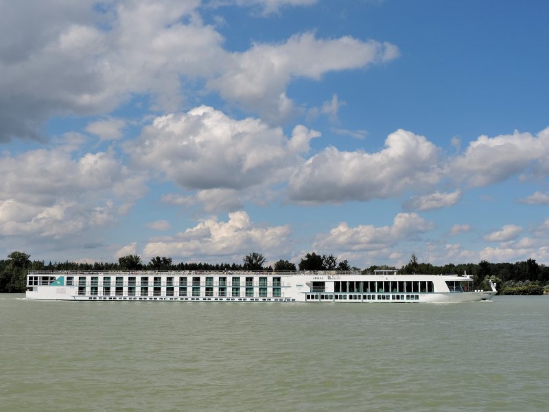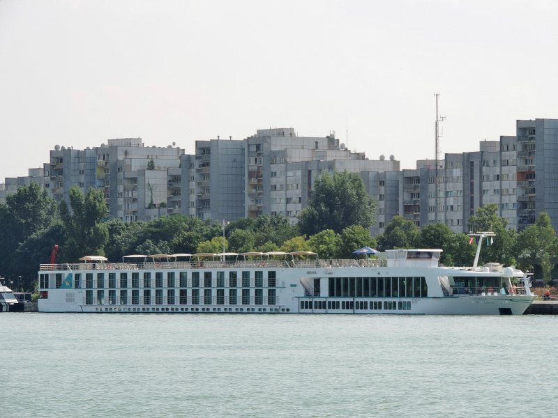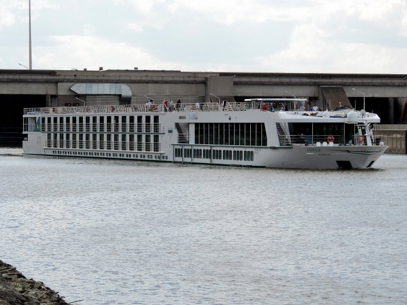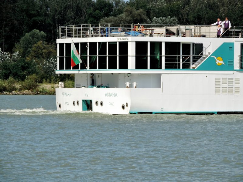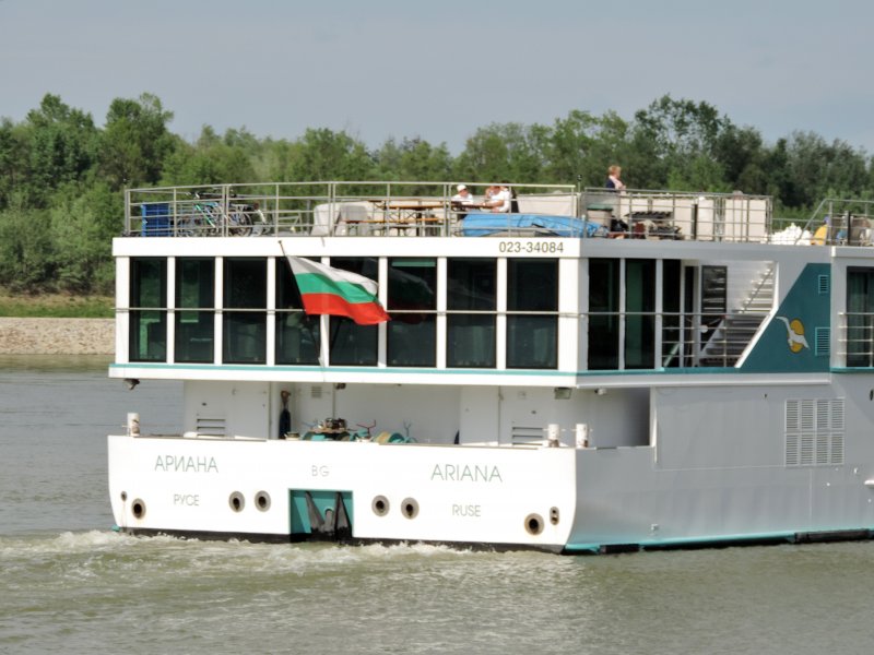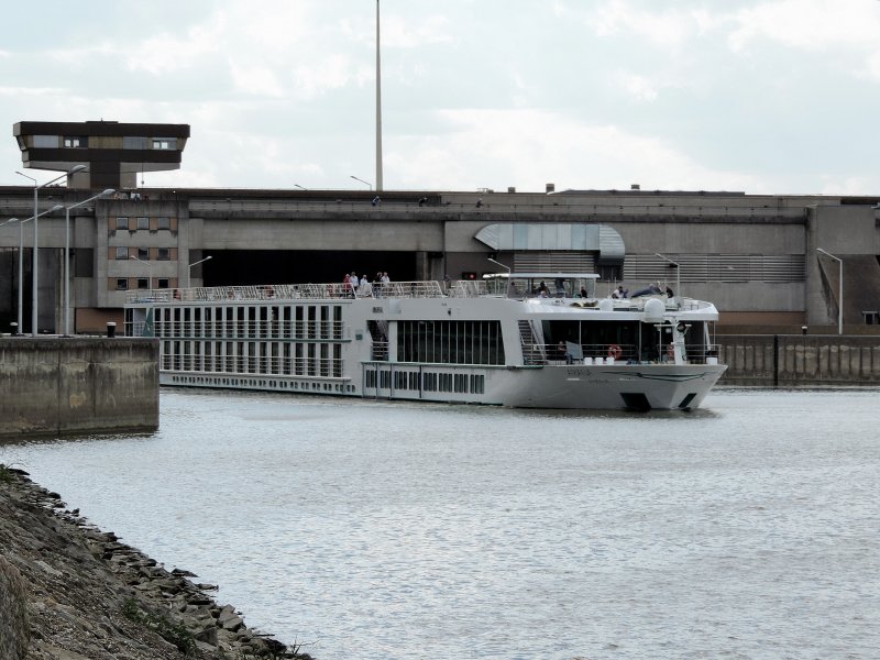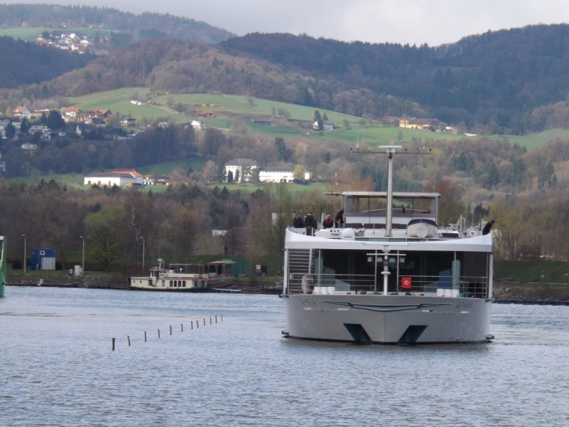 Heute war die ARIANA kurz vor ihrer Ankunft bergfahrend im Donau-Südarm in Regensburg.