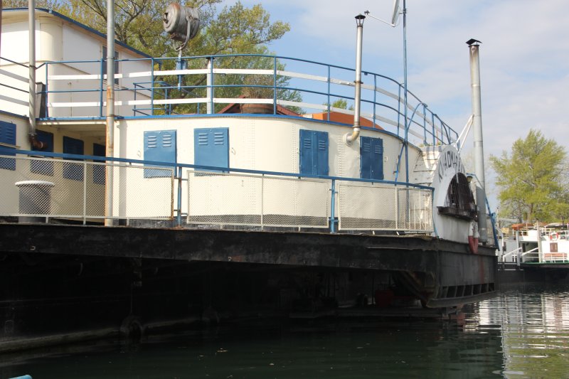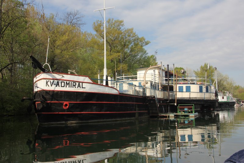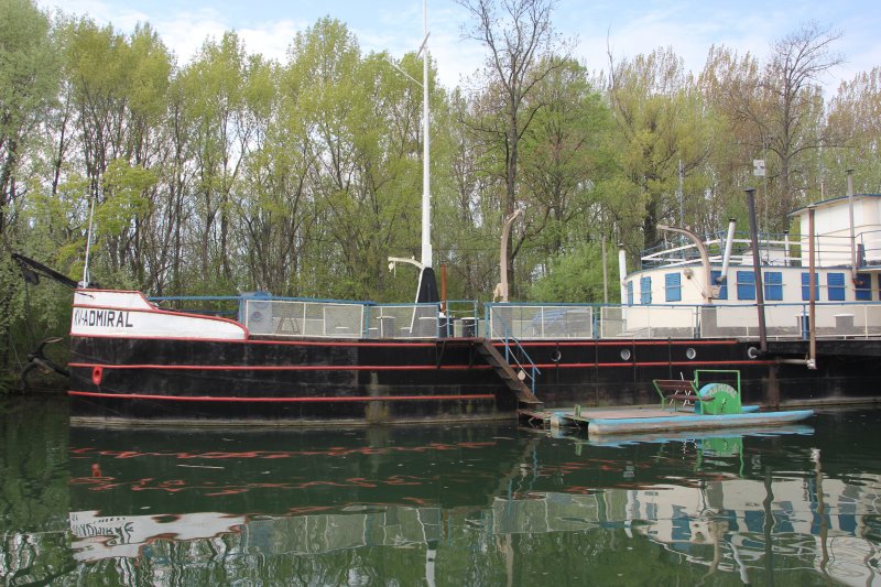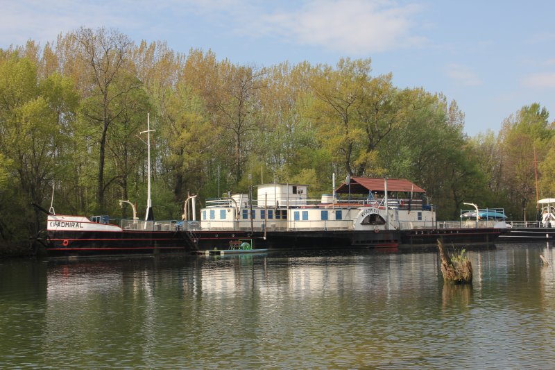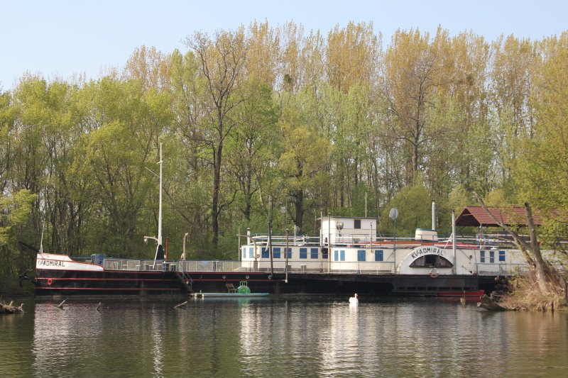 In BRATISLAVA RUSOVCE liegen 2 Raddampfzugschiffen das RDZS KV Admiral und RDZS KVR-Starý Duna.