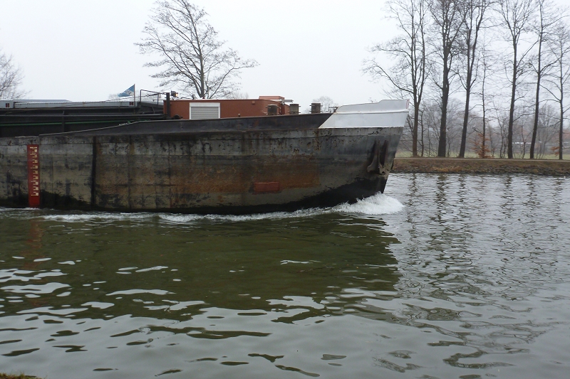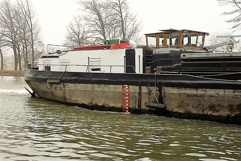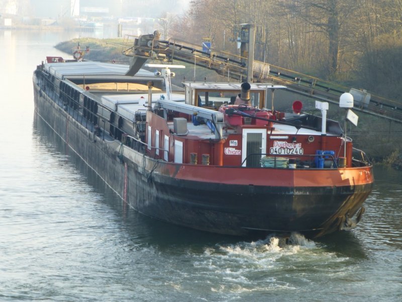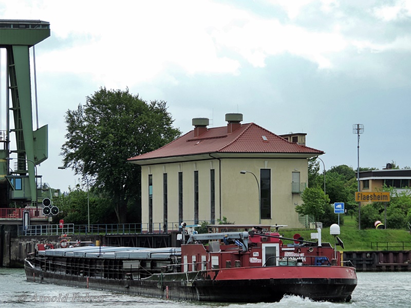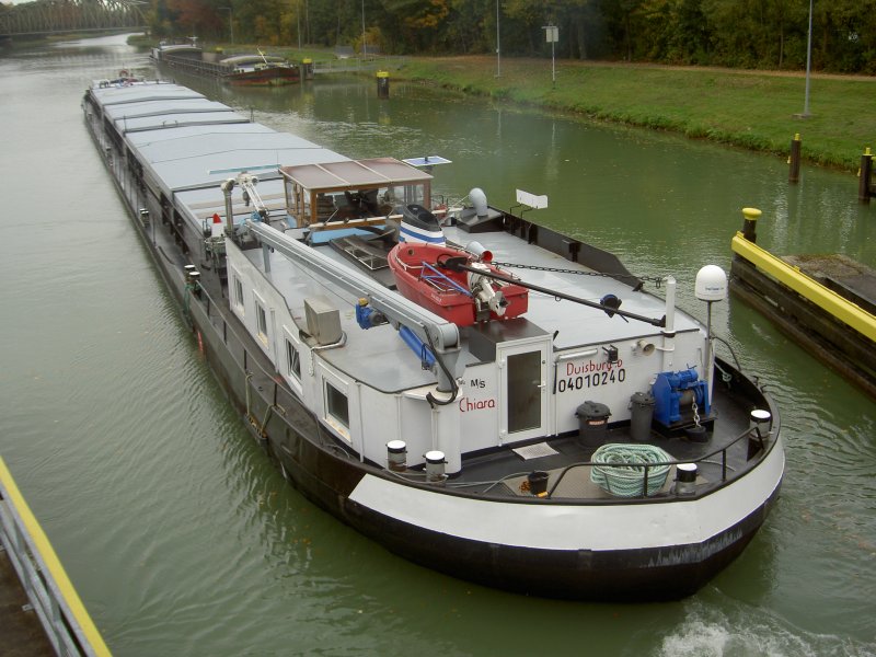 Die Chiara im März 2015 an der WDK-Schleuse Flaesheim auf Talfahrt.