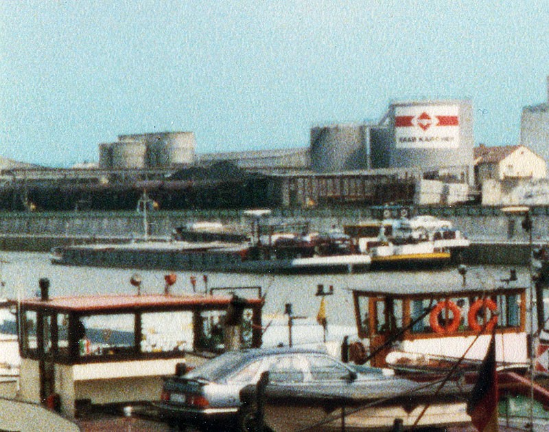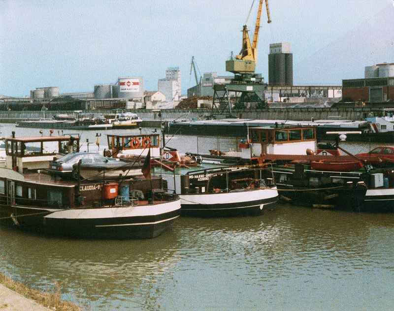 noch ein weiteres 'Wimmelbild' vom Frühling 1988 im Bamberger Hafen bei einer Schifffahrtssperre - diesmal wird's etwas unübersichtlicher mit den Schiffen ANNA HEINRICH, CLAUDIA-H, EPSILON, HANAU, MARIANNE, ST. MICHAEL und einem Schiff das ich bislang nicht identifizieren konnte - da ich mir keine Notizen gemacht habe, nehme ich an, ich kenne das Schiff - muss mich lediglich erinnern! In diesem Fall geht es um das mittlere der drei Schiffe im Hintergrund (genauer gesagt das mit dem gelben Schanzkleid): EPSILON, Ho. Rotterdam, L 80, B 9.50, T 1271, 2305084. Das Schiff vor der EPSILON konnte ich bis jetzt nicht mehr wieder identifizieren, der dahinter ist der ANNA HEINRICH. Leider musste ich damals als Kapazitätsmangel 'Sammelaufnahmen' machen. Daher eine etwas vergrößerte Detailaufnahme.