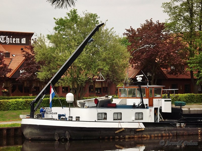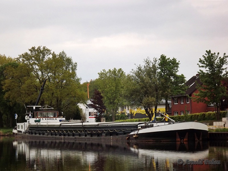 Die Karola im Mai 2013 in Lingen stillliegend. Scheinbar noch in der Wandlungsphase, am Schiff wurde noch gearbeitet.
