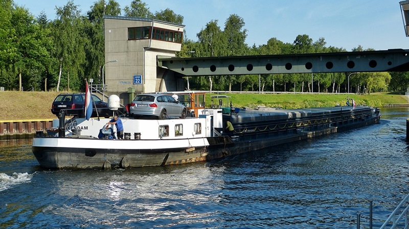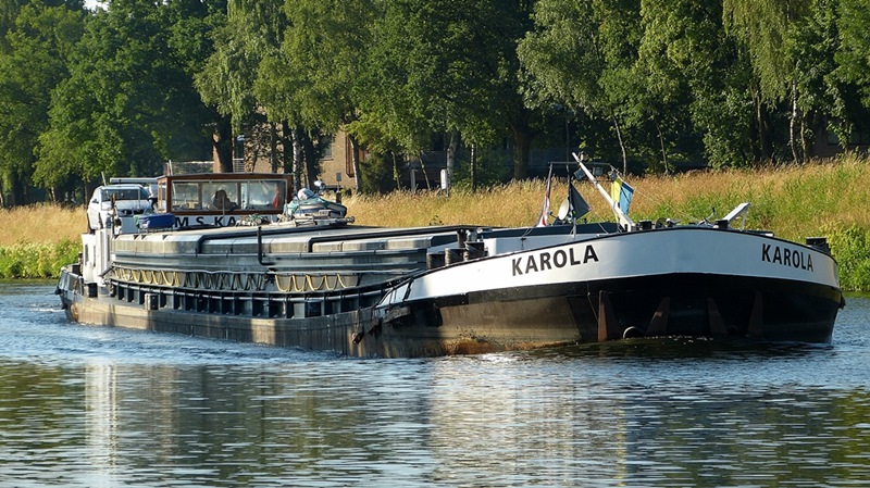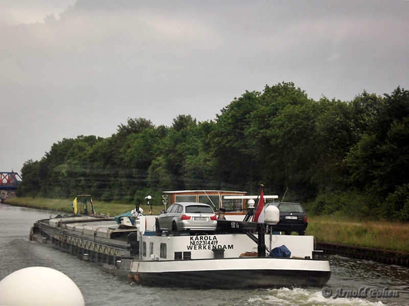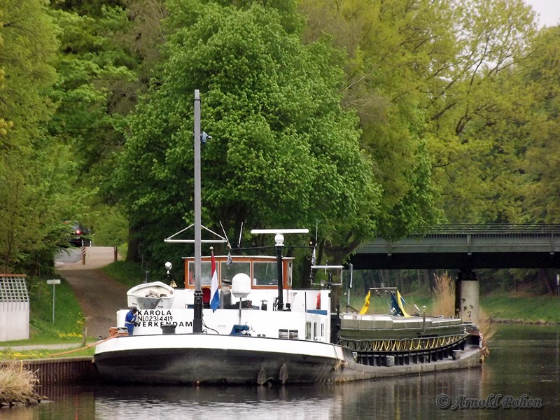 Die Karola im Mai 2014 auf dem WDK an der Hünxer Brücke im zeitraubenden Schleusenrang..