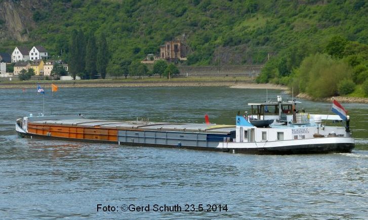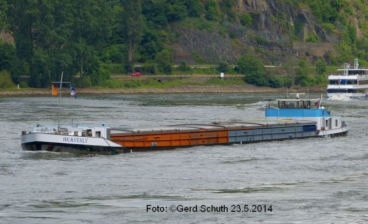 Den Frachter Heavenly habe ich am Dorstener Hafen zu Berg fahren gesehen.