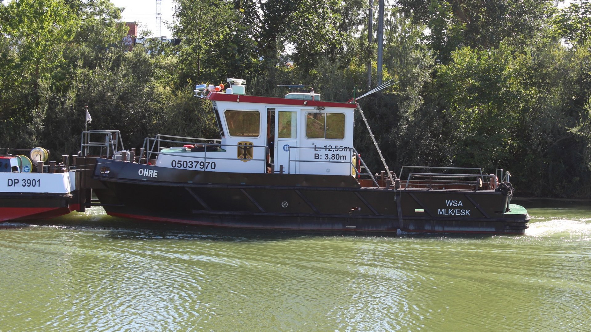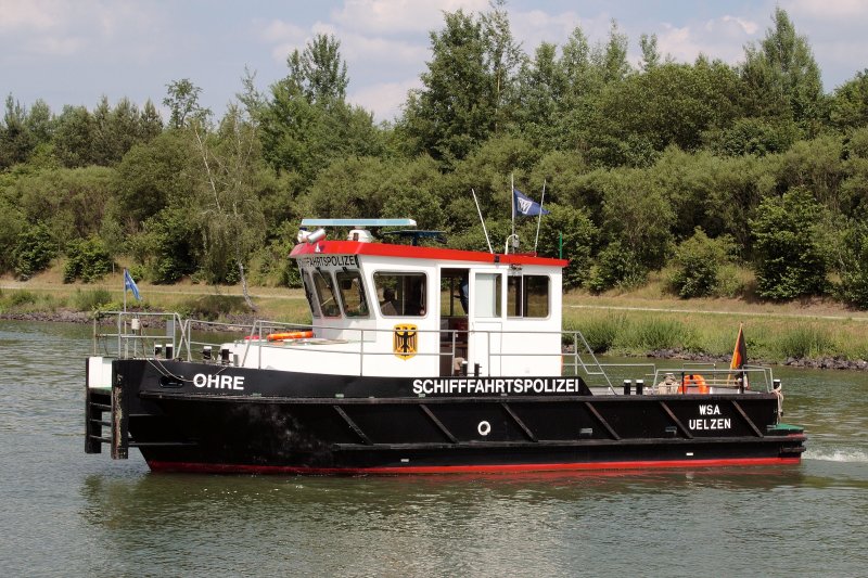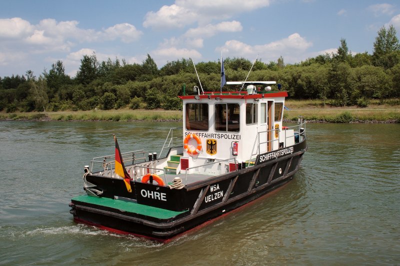 Das deutsche Mehrzweckboot Ohre habe ich in Wolfsburg in Richtung Vorsfelde fahren gesehen.