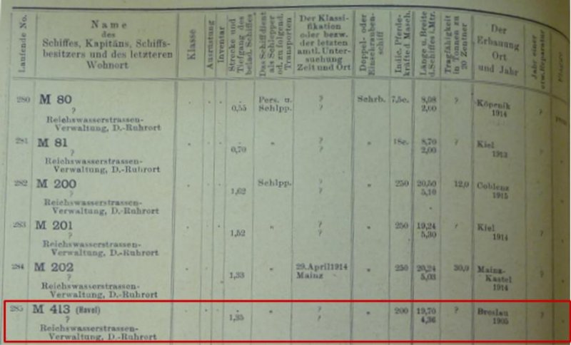 Aber es gibt ja noch den Monopolschlepper gebaut ebenfalls 1913 auf der Schichau Werft. Dieser trug die Schleppernummer 111 und die Bezeichnung M bzw. H 111. Nur die 111 wird auch in dieser 1. Schiffsliste unter der Schleppernummer 111 als Dampfschlepper geführt.