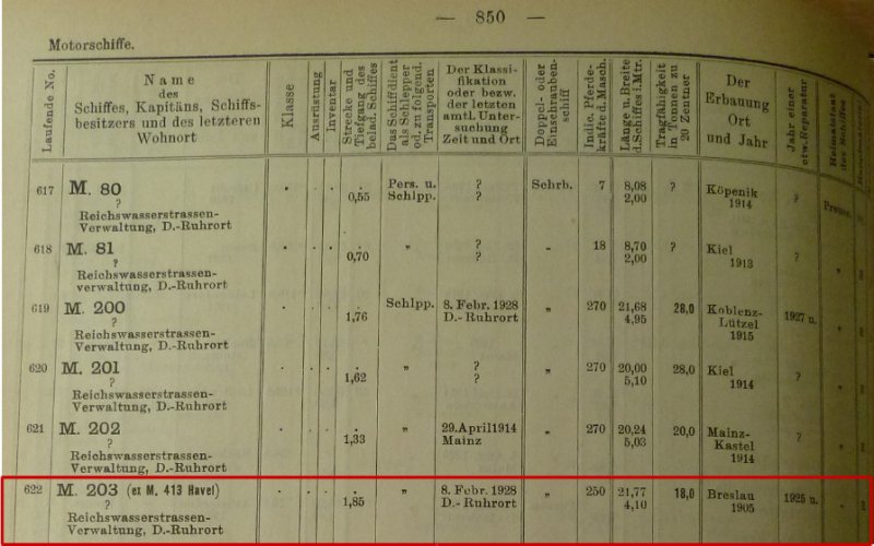 Hier wurde die Umbenennung von M 413 in M 203 im RR 1930 vermerkt: