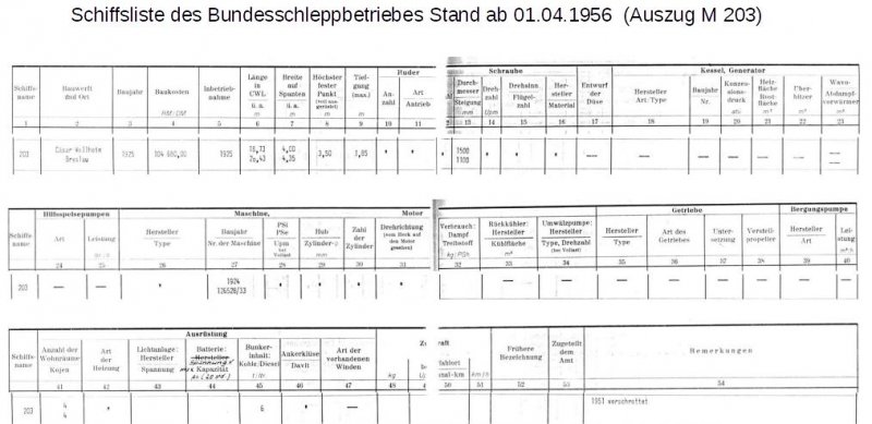 In der Schiffsliste mit Stand 1952 ist der M/tg M 203 nicht erfasst.