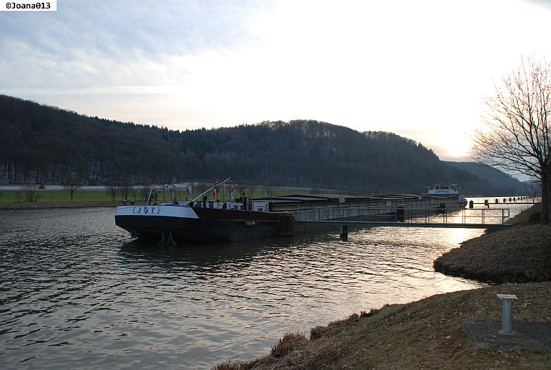 die DENISE lag heute 5.2.12 wegen Eissperre auf dem MDK im Unterwasser der Schleuse Berching fest
