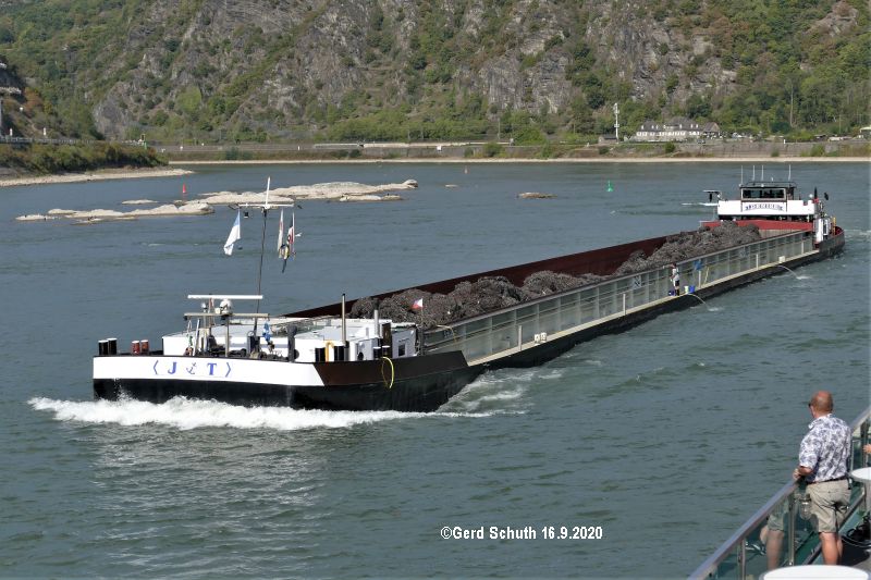 Gesehen auf Bergfahrt unterhalb der Loreley im Juli 2020