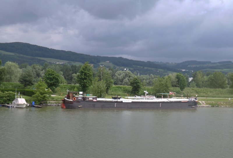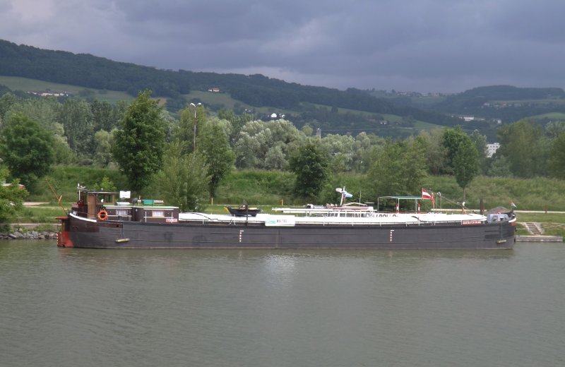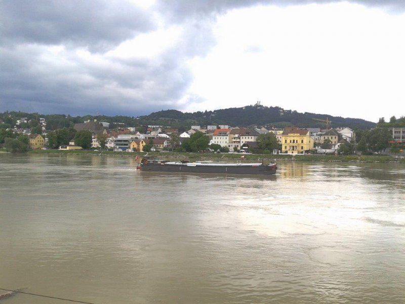 und wartet hier auf einen Lotsen (mit Donaupatent) zur Weiterfahrt Richtung Passau.