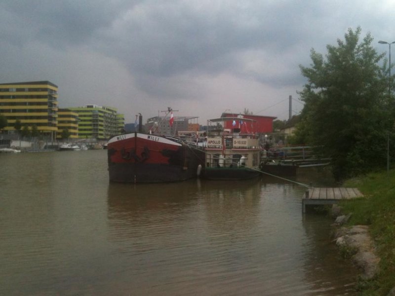 Nach dem binnenschifferforum.de -Treffen ist WILLI nun im Winterhafen Linz/Donau gelandet und hat sich auf die MS APOLLO gelegt.